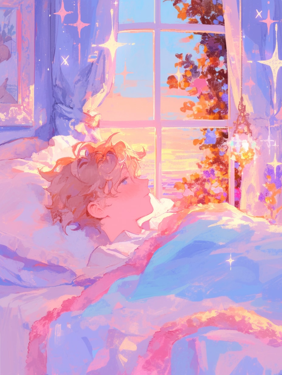 彼の朝は、いつも静かで美しい。部屋に差し込む柔らかな朝の光は、まるで絵画のように彼を包み込む。窓際で、二匹の猫がそっと彼を見守っている。この光景は、日常の小さな幸せと、静寂の瞬間を象徴している。