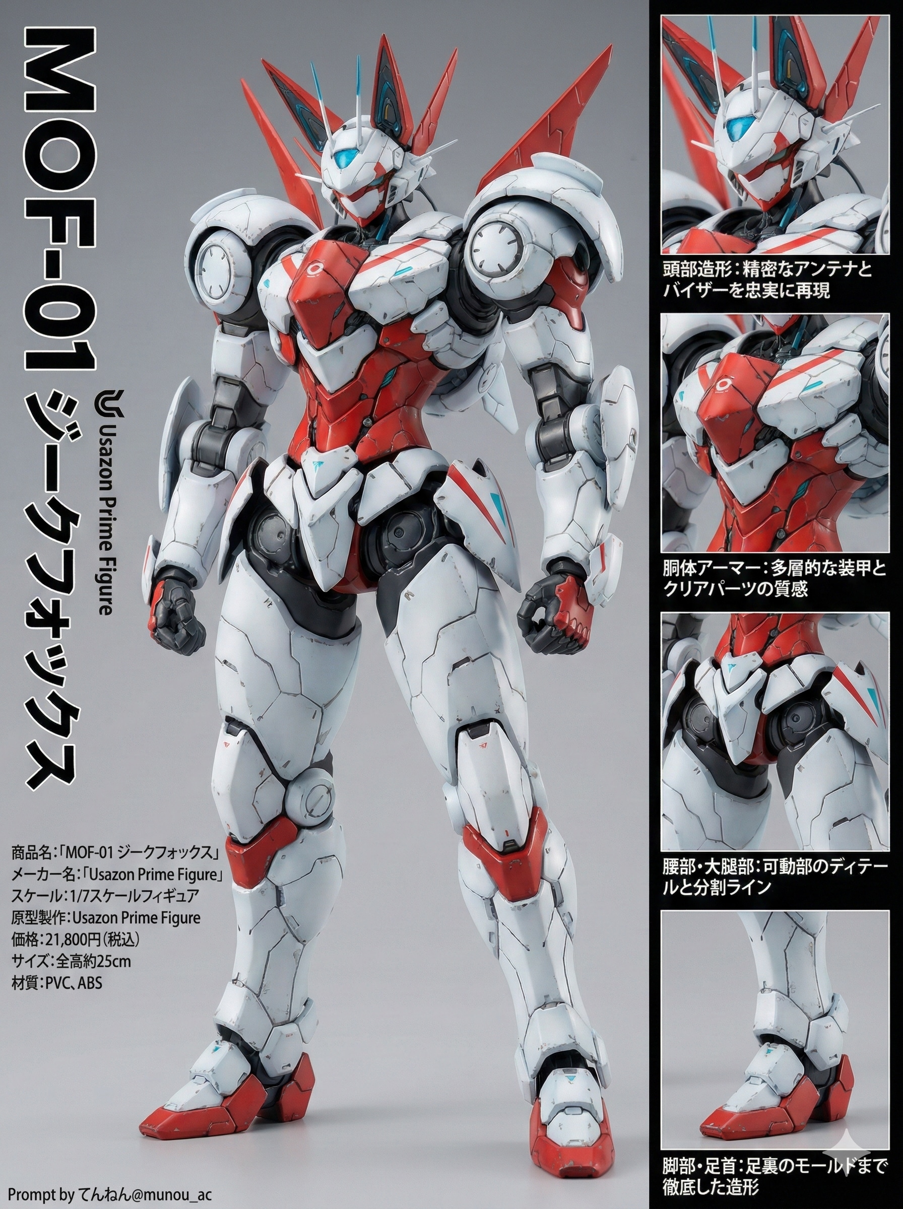 兎の獣人族しかその声を聴くことのできない幻の2号機。正式開発が終了せず、機体がグレーの試験塗装のままだったあの悲劇の機体を、眠りから覚めた最初の登場時そのままの姿で再現。思念波を受信する兎耳アンテナ、両肩の思念波増幅パネル、モフコミュ・システムの禁断の力を発動させるときの胸の発光コアも余すところなくモデル化。