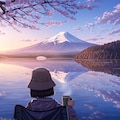 富士山が見えるファンタジー湖畔です。