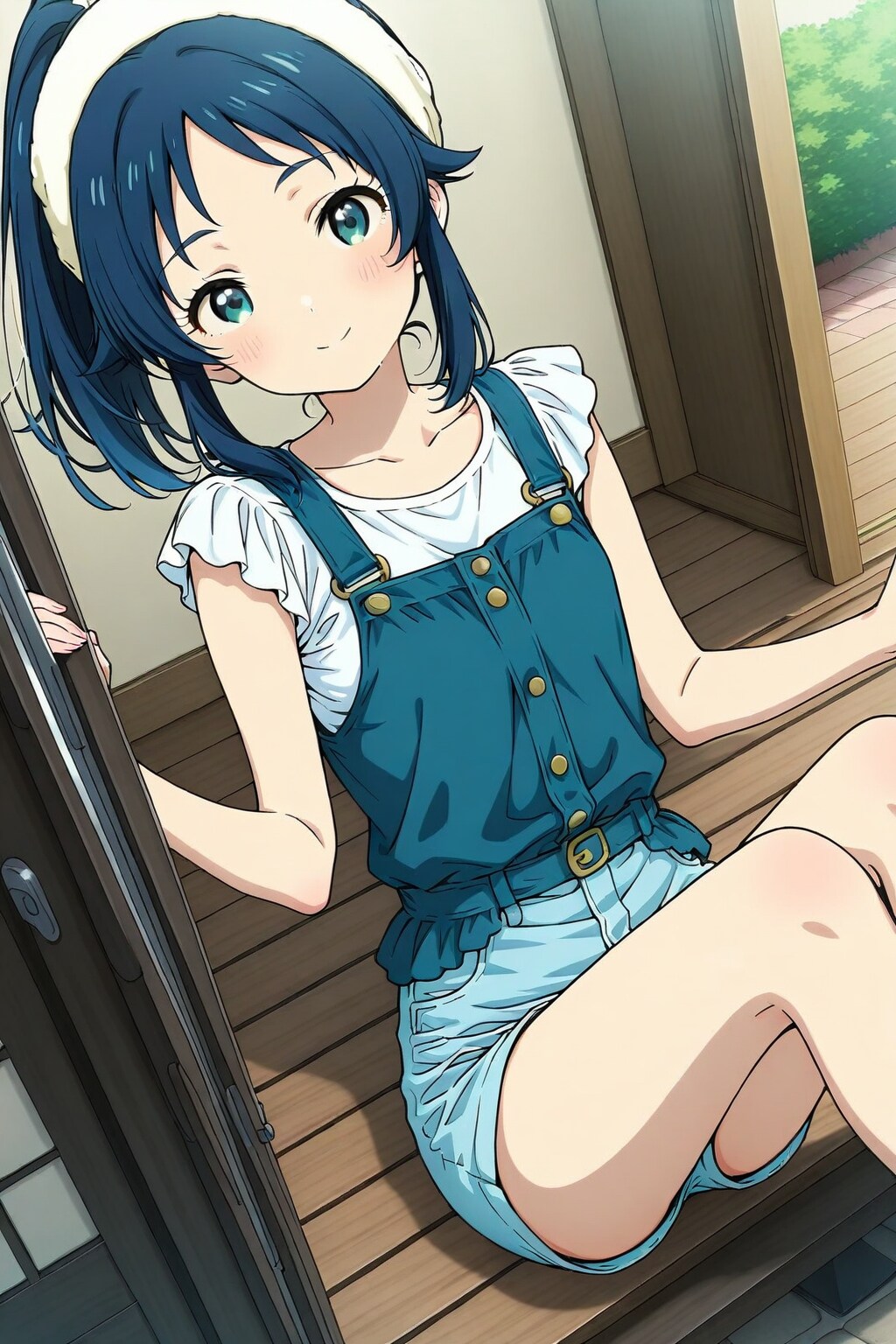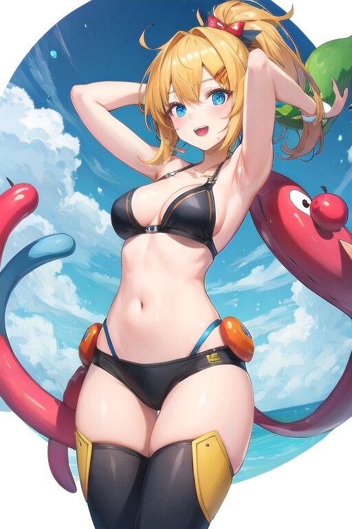 ponytail, tank top, cute edge shirt, short pants, temptation thighs, neck, arm,