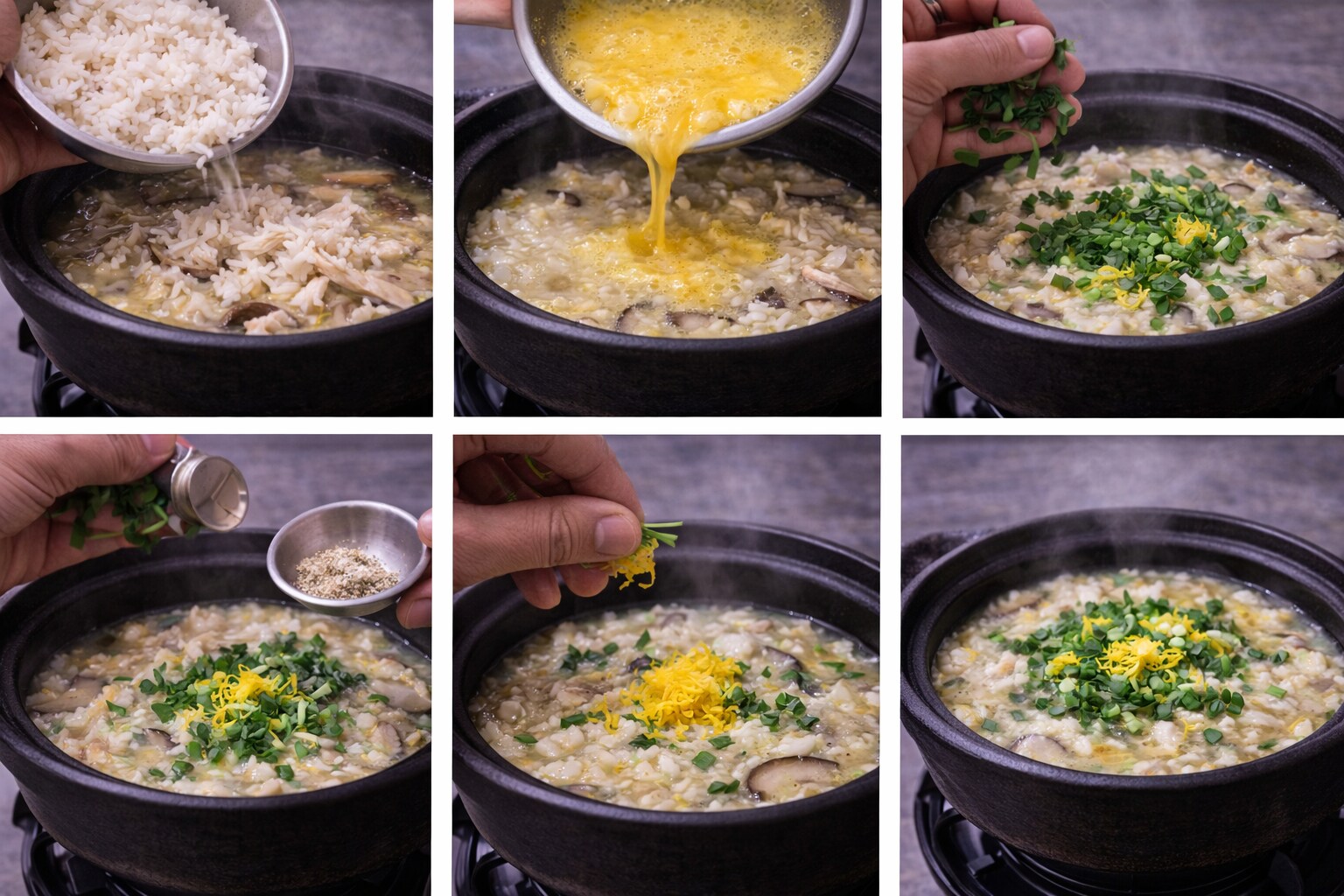 木のテーブルに置かれた瞬間、湯気が静かに立ち上がる。派手な香りではない。だが、鶏だしの“澄んだ匂い”は、こういう料理でしか味わえない。土鍋の縁に鼻を近づけると、鶏の旨みがふわっと広がり、そこにねぎの青い気配と柚子の香りが重なる。雑炊は、胃にやさしい顔をして、実は香りの料理だ。