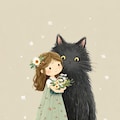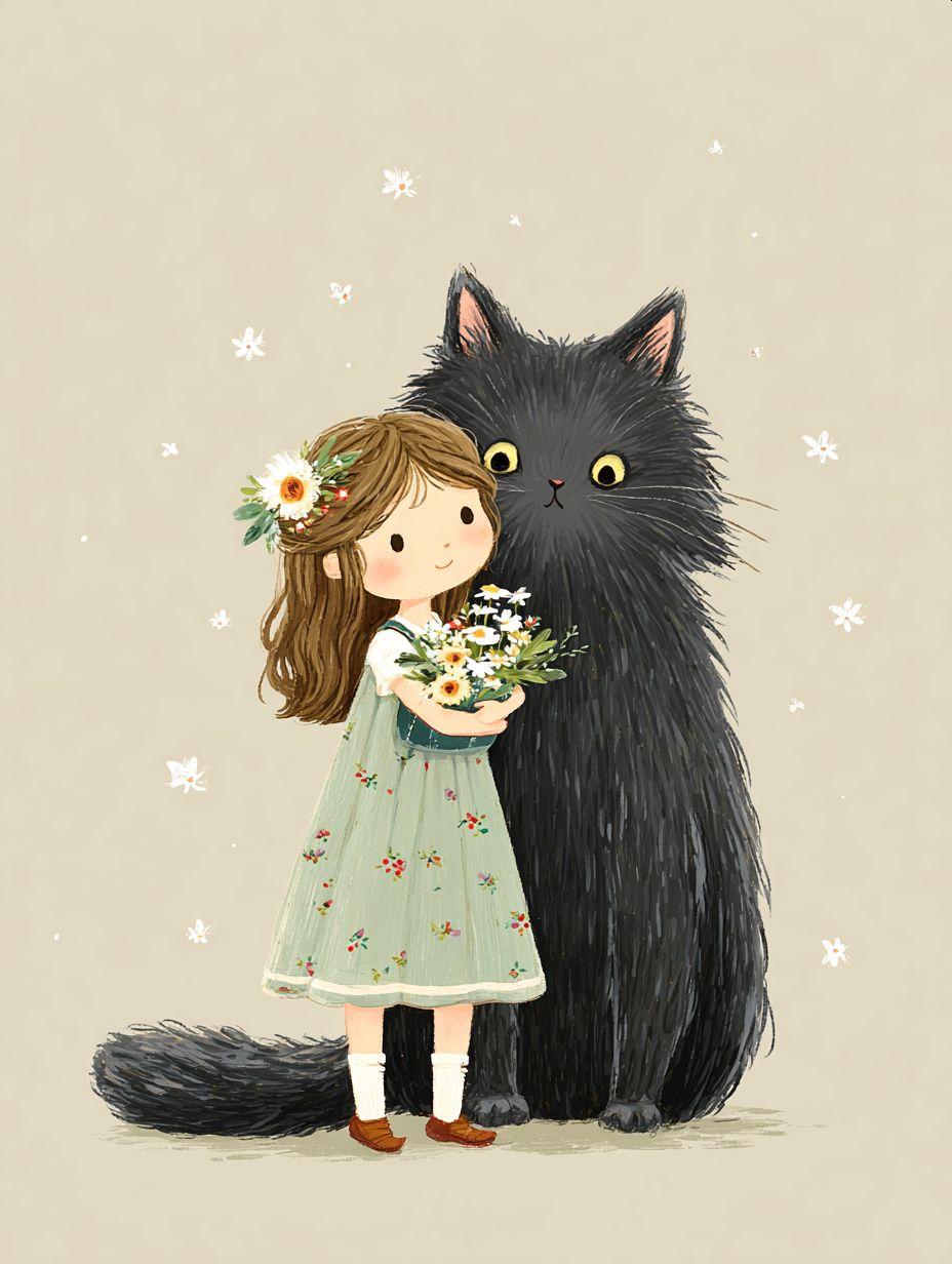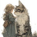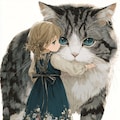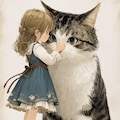 小さな女の子とおっきい猫
