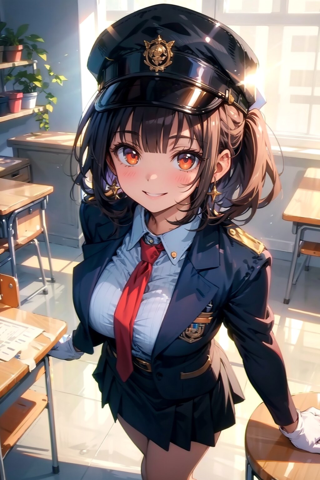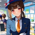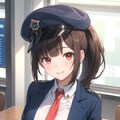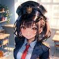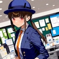 "dark blue jacket, blue round (bowler hat), station staff" でなんとかそれっぽくなるが、教室の机が出たりする。