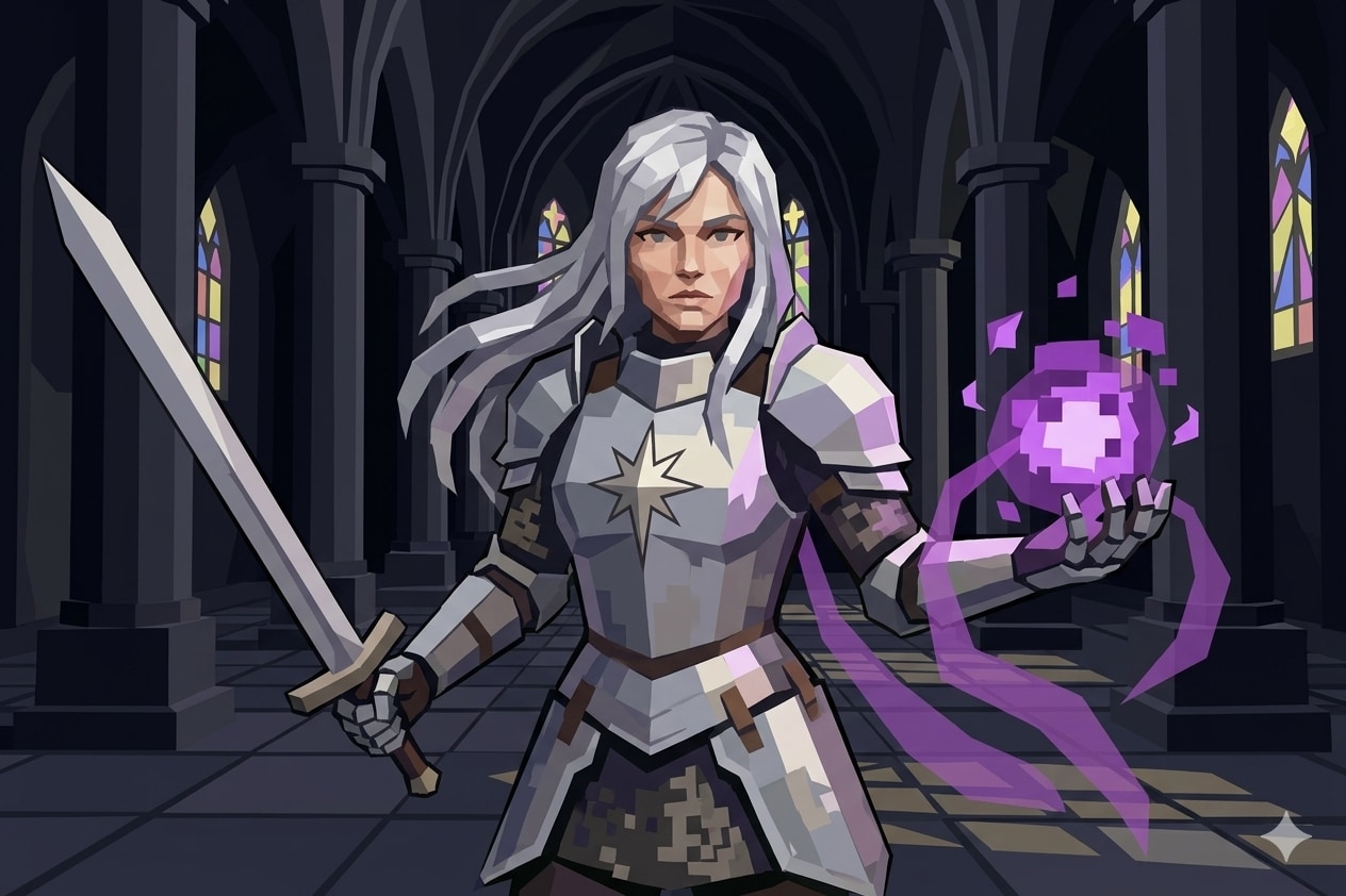Geminiのプロンプトでは「背景に手を抜いたポリゴン風で」→「全体に荒いポリゴン風で」→「中間くらいの粗さで」と