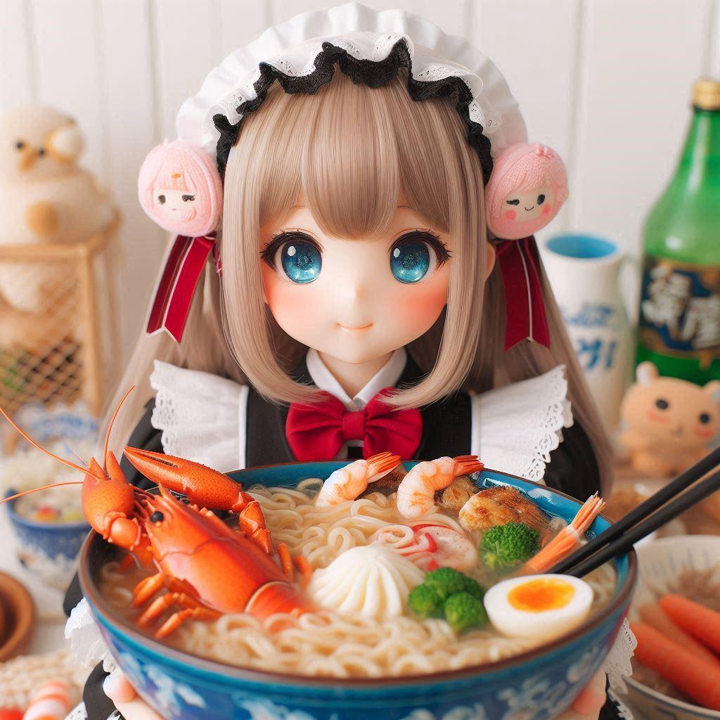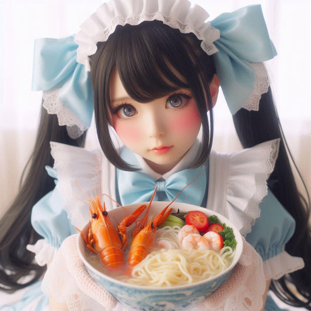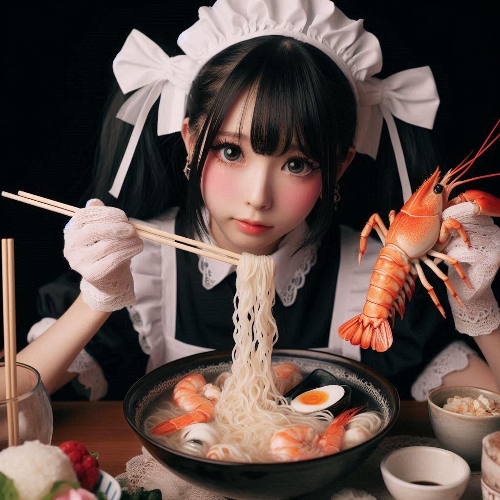 8/1追記:「メイドガールとseafood noodle」が2024年7月31日のAIフォトデイリーランキング10位に入りました!
