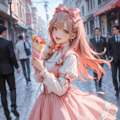 (当初別の服で登場予定だったが、たまたま頭にピンクのリボンがついたらかわいかったので甘ロリ服に。一応対策は試みたが、プロンプトに引っ張られてこの服のときはかなり幼くなってしまっている。)