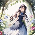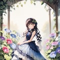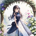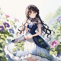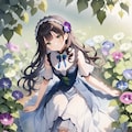 朝顔とサマードレスの少女