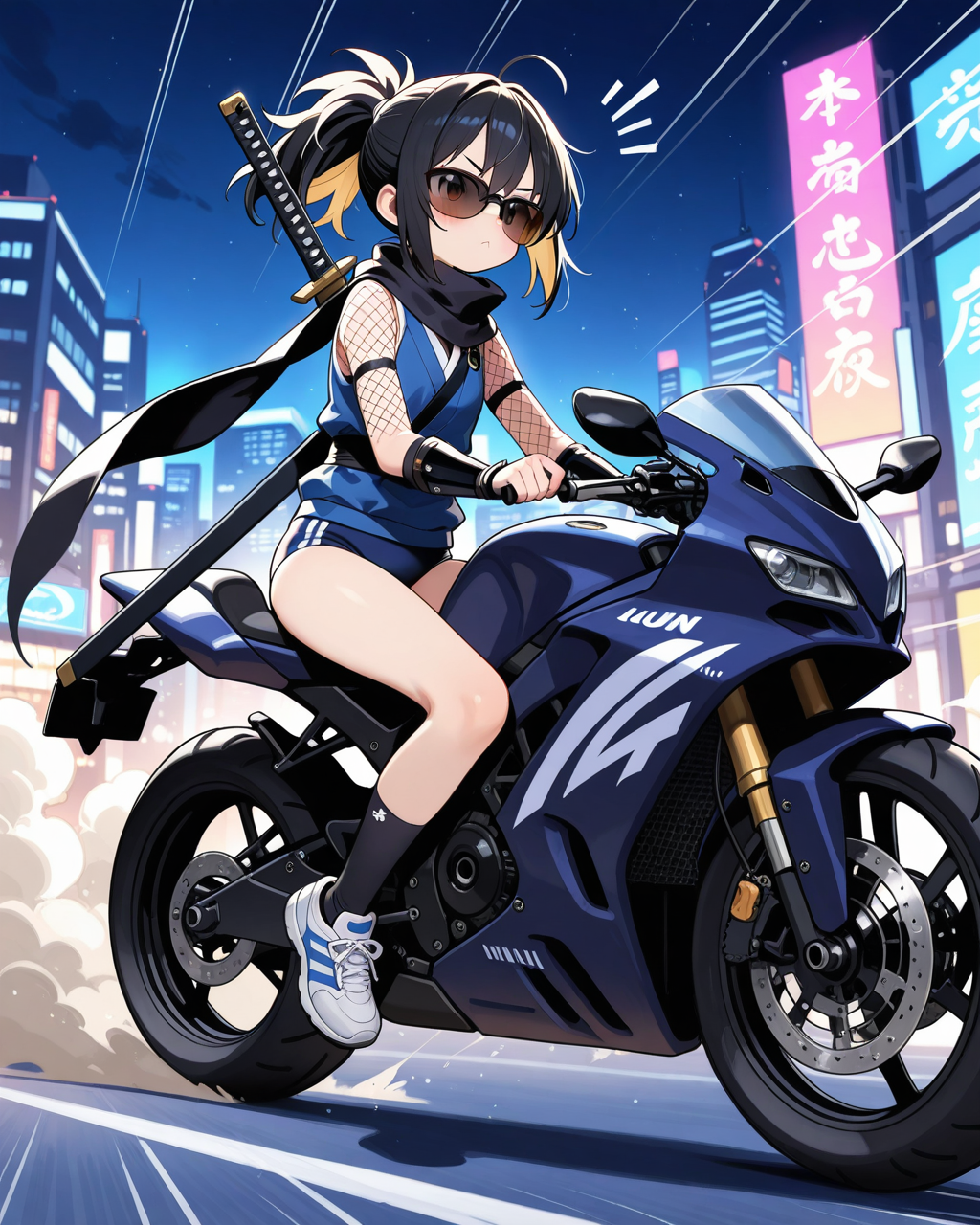 jacket partially removed, heart in eye, burnt clothes, holding fishing rod, kanji, doujin cover, pentagram, tape gag, adjusting headwear, red socks, friends, cloud print, coke-bottle glasses, oral invitation, competition school swimsuit, barbell piercing, gradient legwear, prisoner, blood on breasts, wind chime, carrying over shoulder, tape measure, flaming weapon