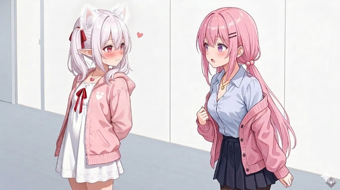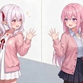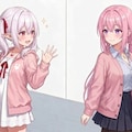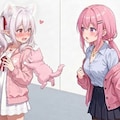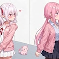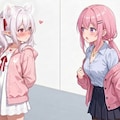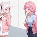 桃香さん:何?後ろで驚いた声がしたので振り返ってみると白髪をツインテールにしたピンク色のパーカーを着た女の子が立っていた