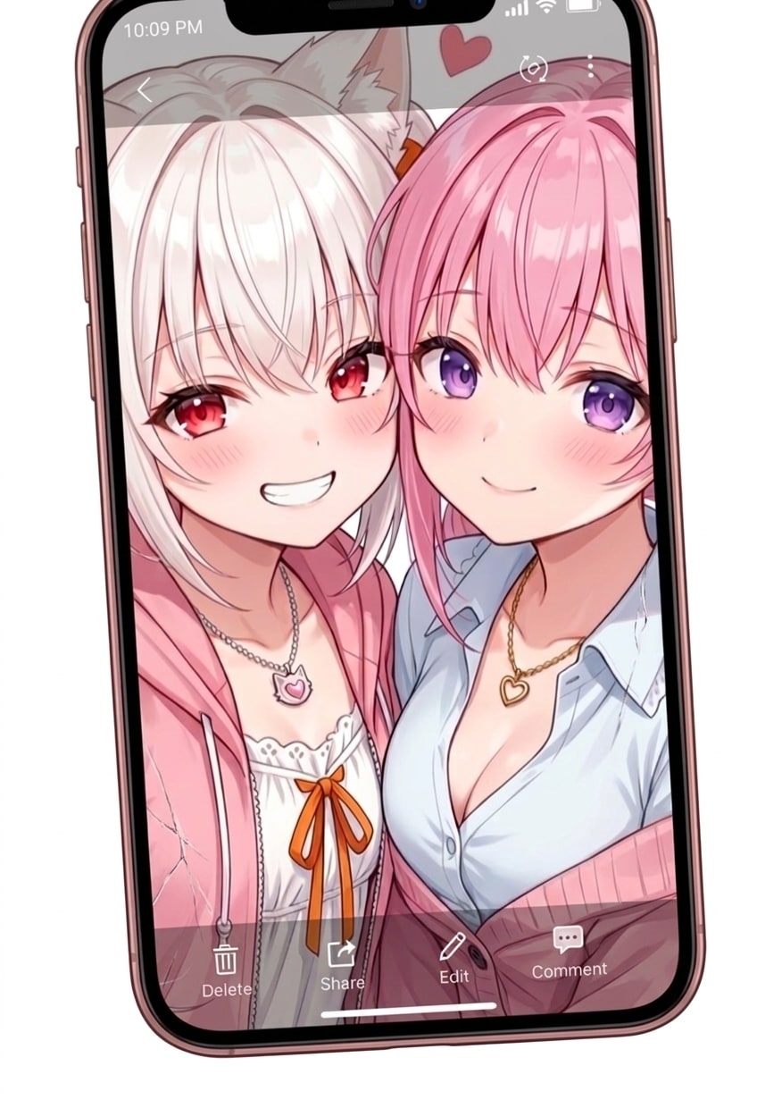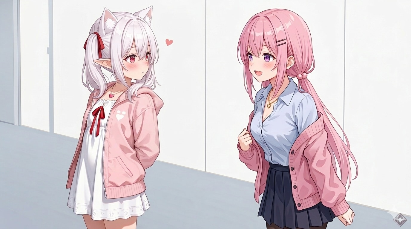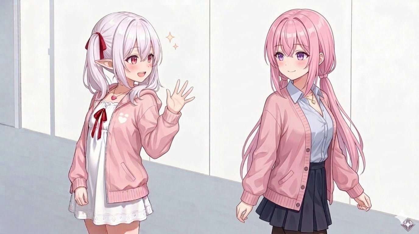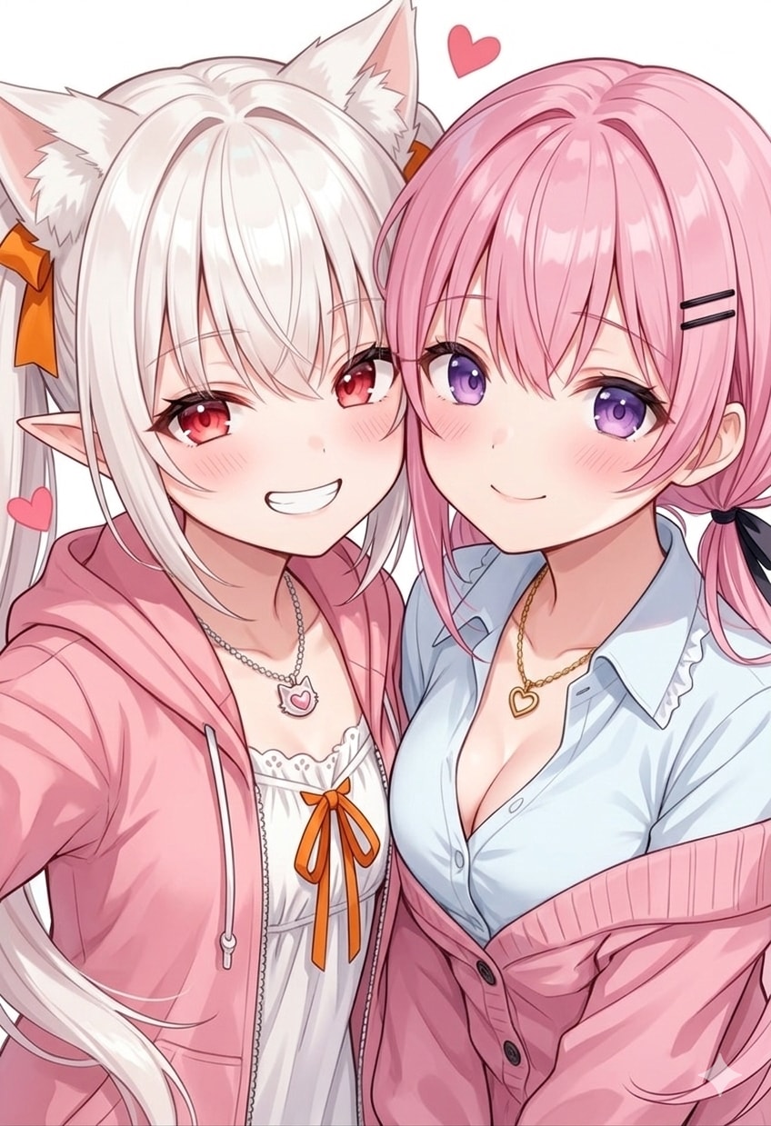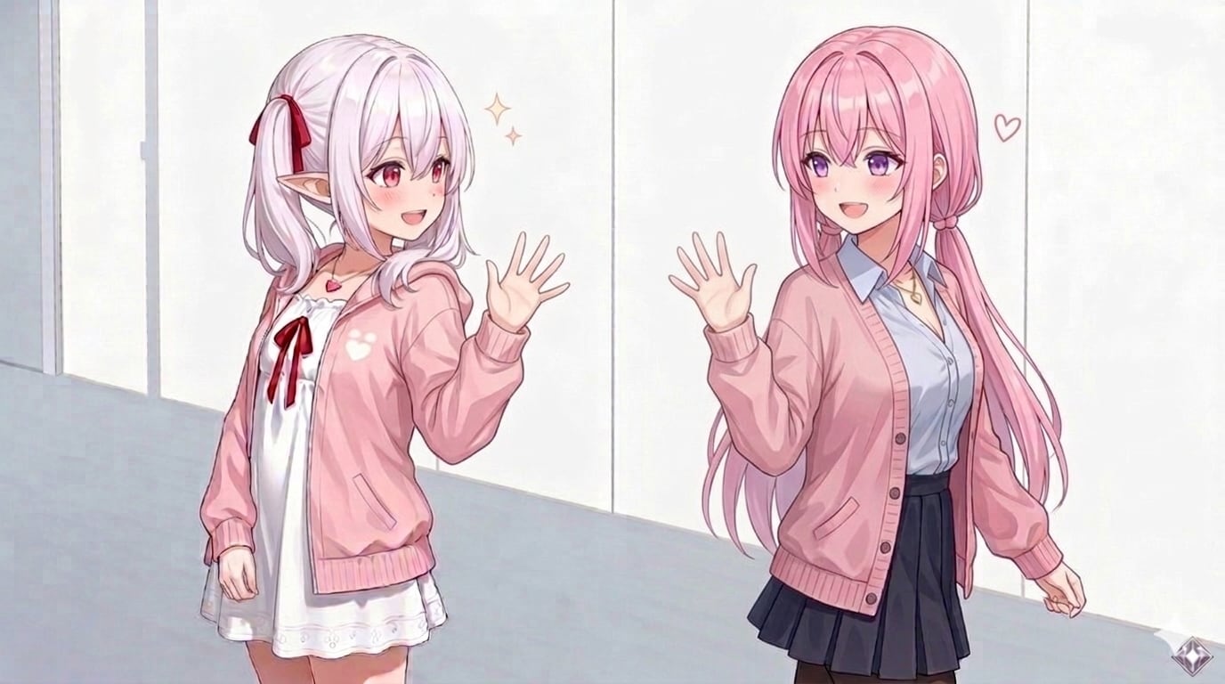 「桃香は良い出会いがあったんだな」にする予定でしたが、服の裾が2人共なんと偶然にもピンクだったので2人で締めました