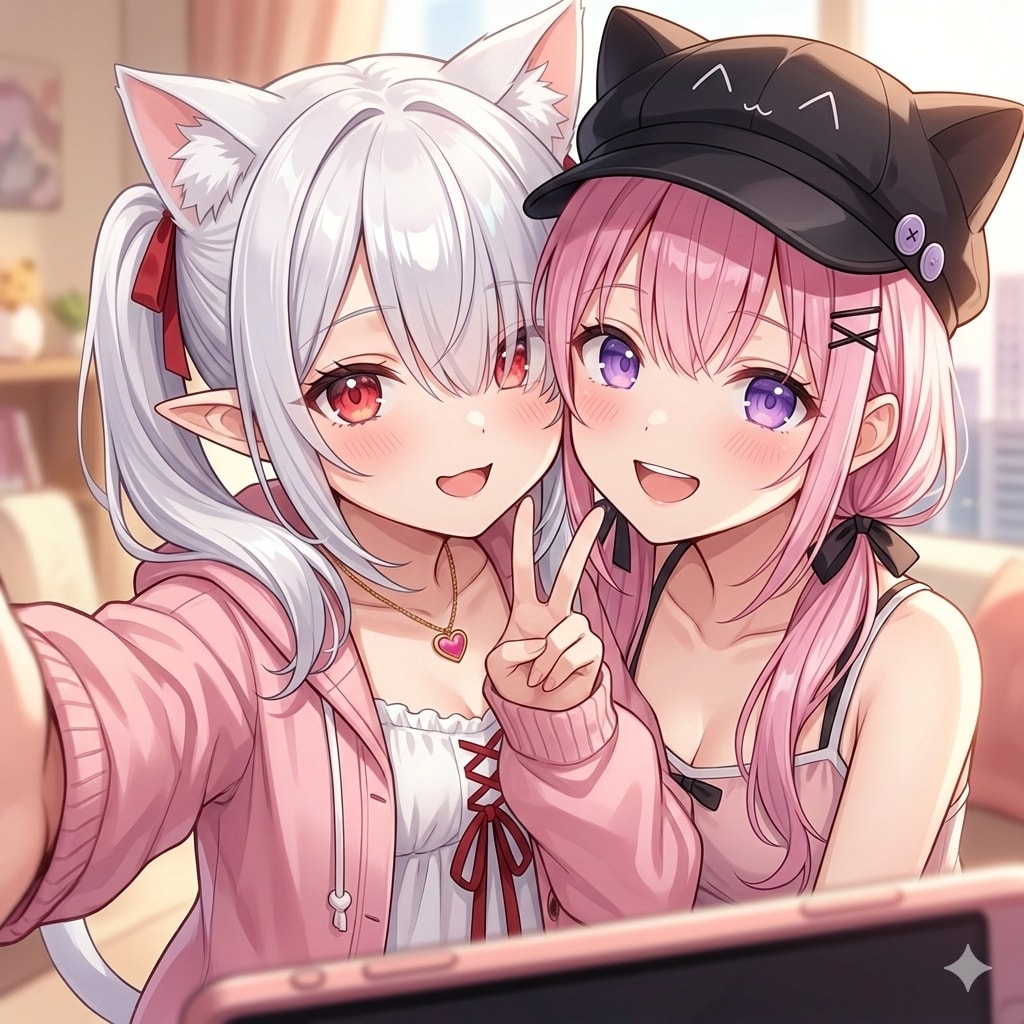桃香:君の猫耳が可愛いから一緒に写真を撮りたいな~って思ったのだけど迷惑かな?