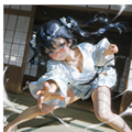 jacket partially removed, heart in eye, burnt clothes, holding fishing rod, kanji, doujin cover, pentagram, tape gag, adjusting headwear, red socks, friends, cloud print, coke-bottle glasses, oral invitation, competition school swimsuit, barbell piercing, gradient legwear, prisoner, blood on breasts, wind chime, carrying over shoulder, tape measure, flaming weapon