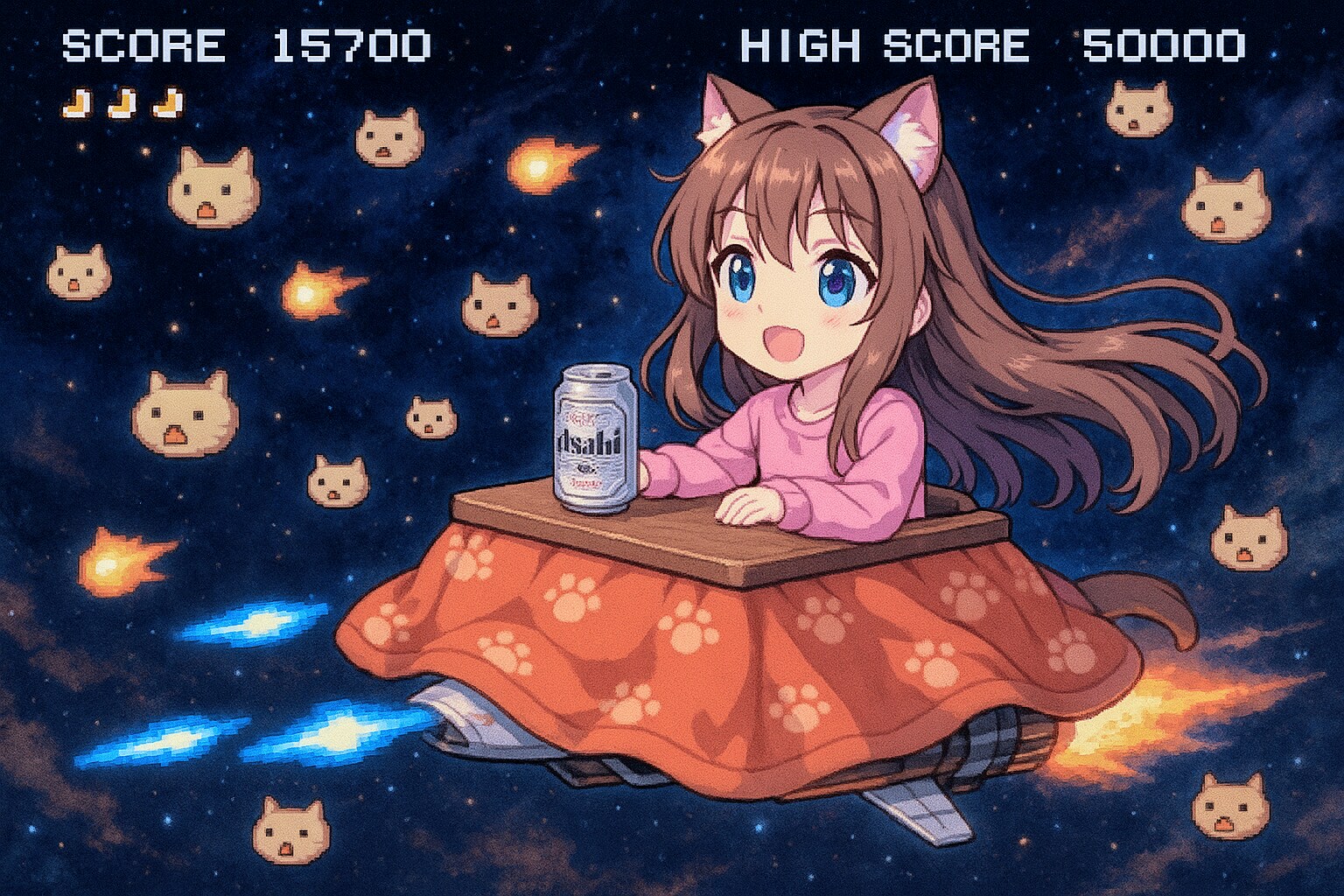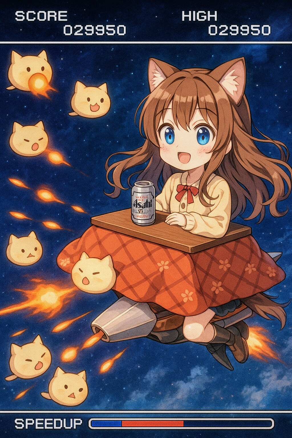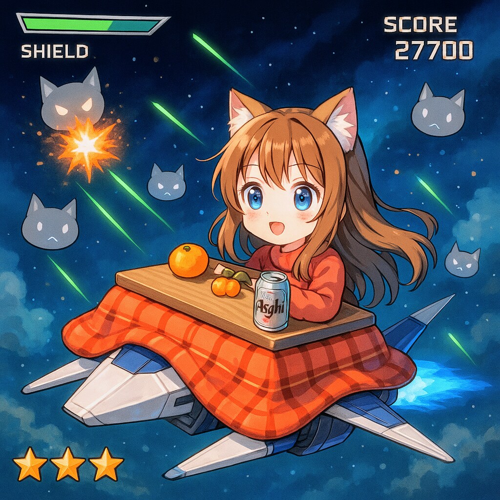 ネコをこたつ型戦闘機で撃ち落とす小さな女の子