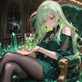 緑玉石(エメラルド)を司る魔女のイメージでプロンプトを組んでみました。