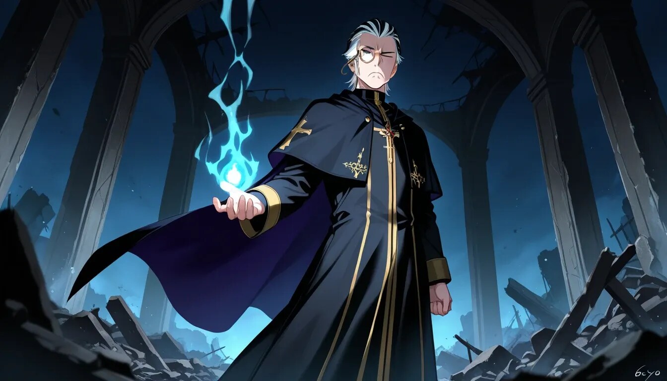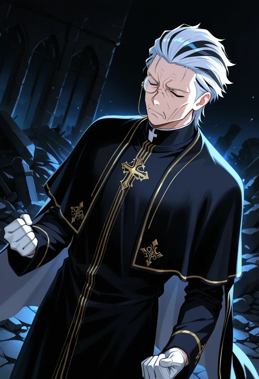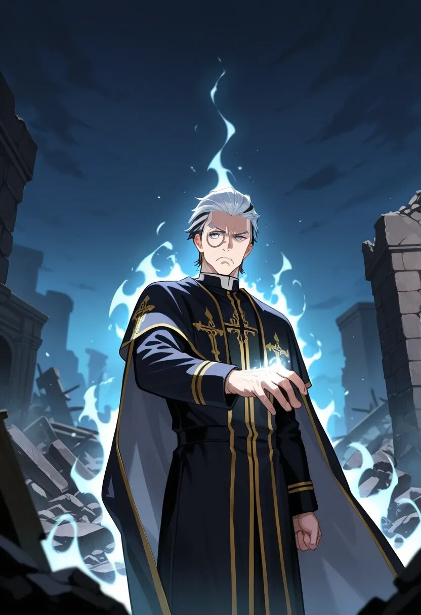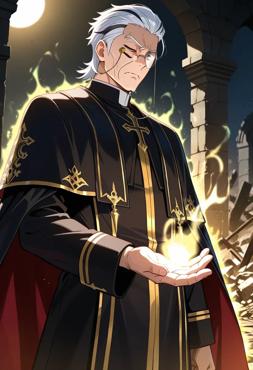を観賞し、脳内で回復職としてイケオジの修道師が駆けつけたらというイメージが浮かび制作したものです。