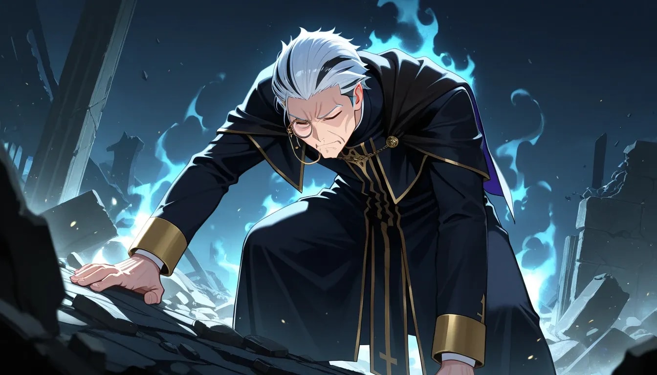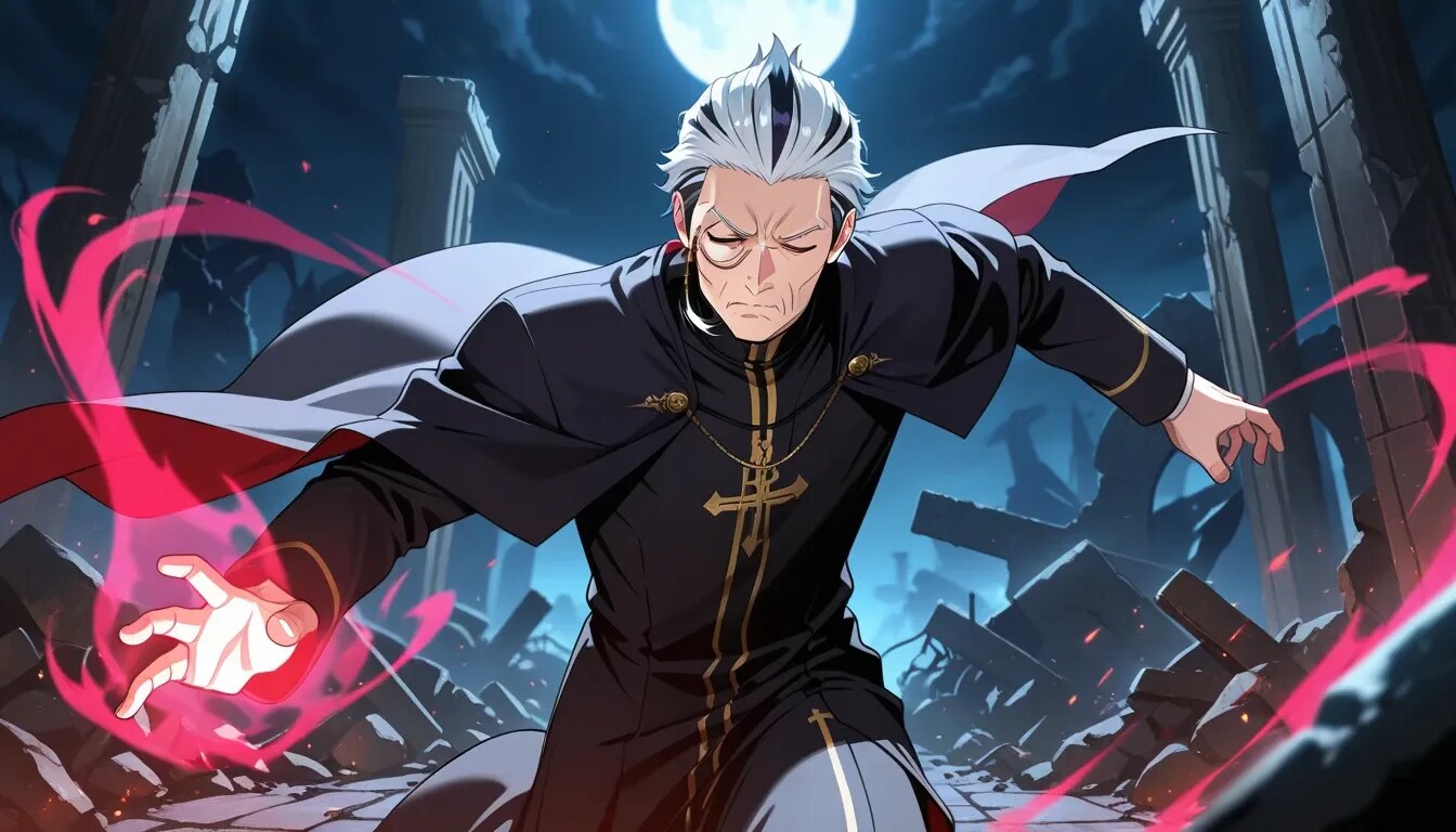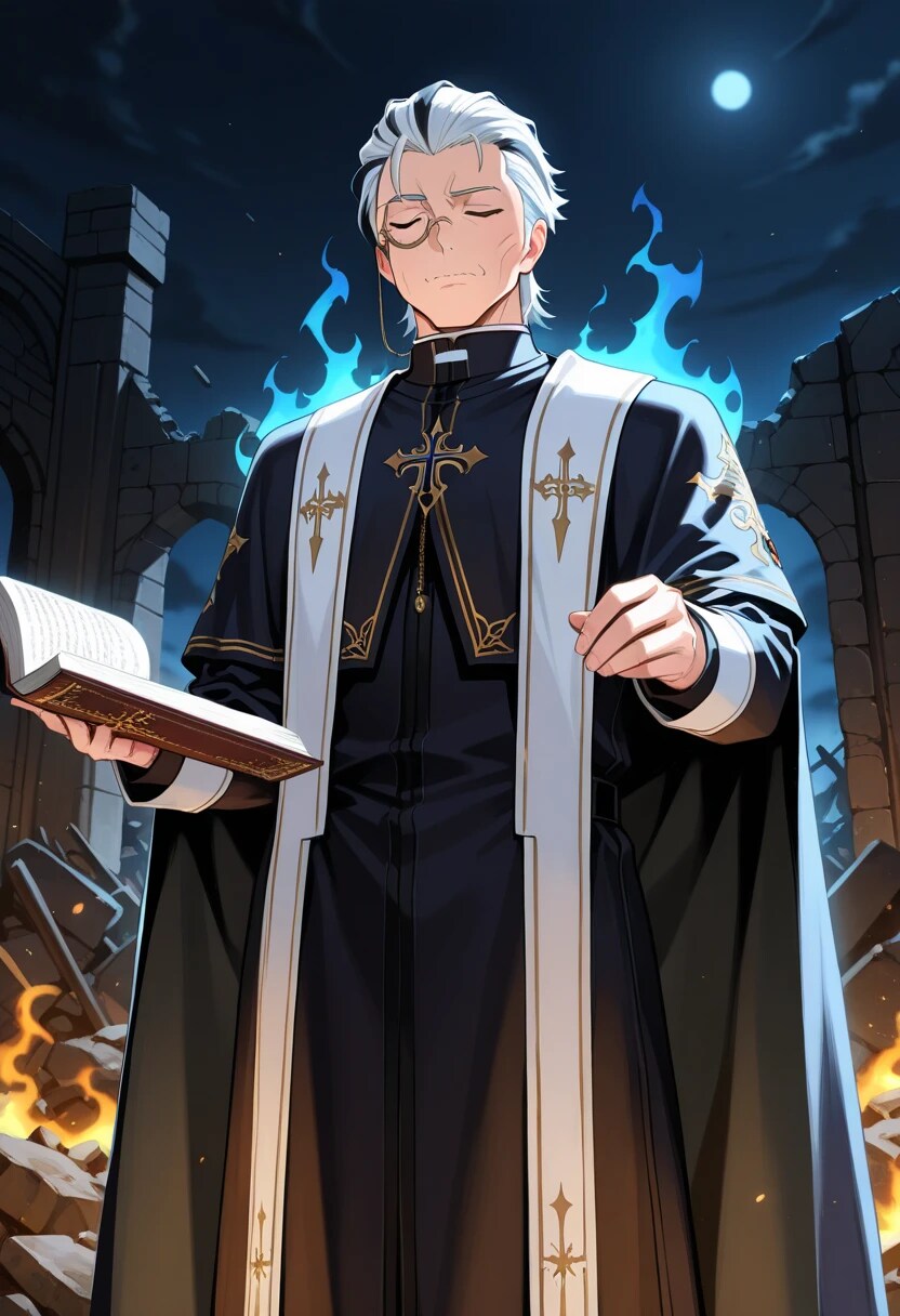 を観賞し、脳内で回復職としてイケオジの修道師が駆けつけたらというイメージが浮かび制作したものです。