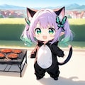 みゅうくるさんちのすみれちゃんが焼肉パーティーに呼んでくださったので、ねこちび姫とぴよちゃんはかぼちゃを持っていくことにしました(^^)