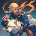 犬がそばにいて青い服着てオレンジのマフラーというだけでガルフォードに見える