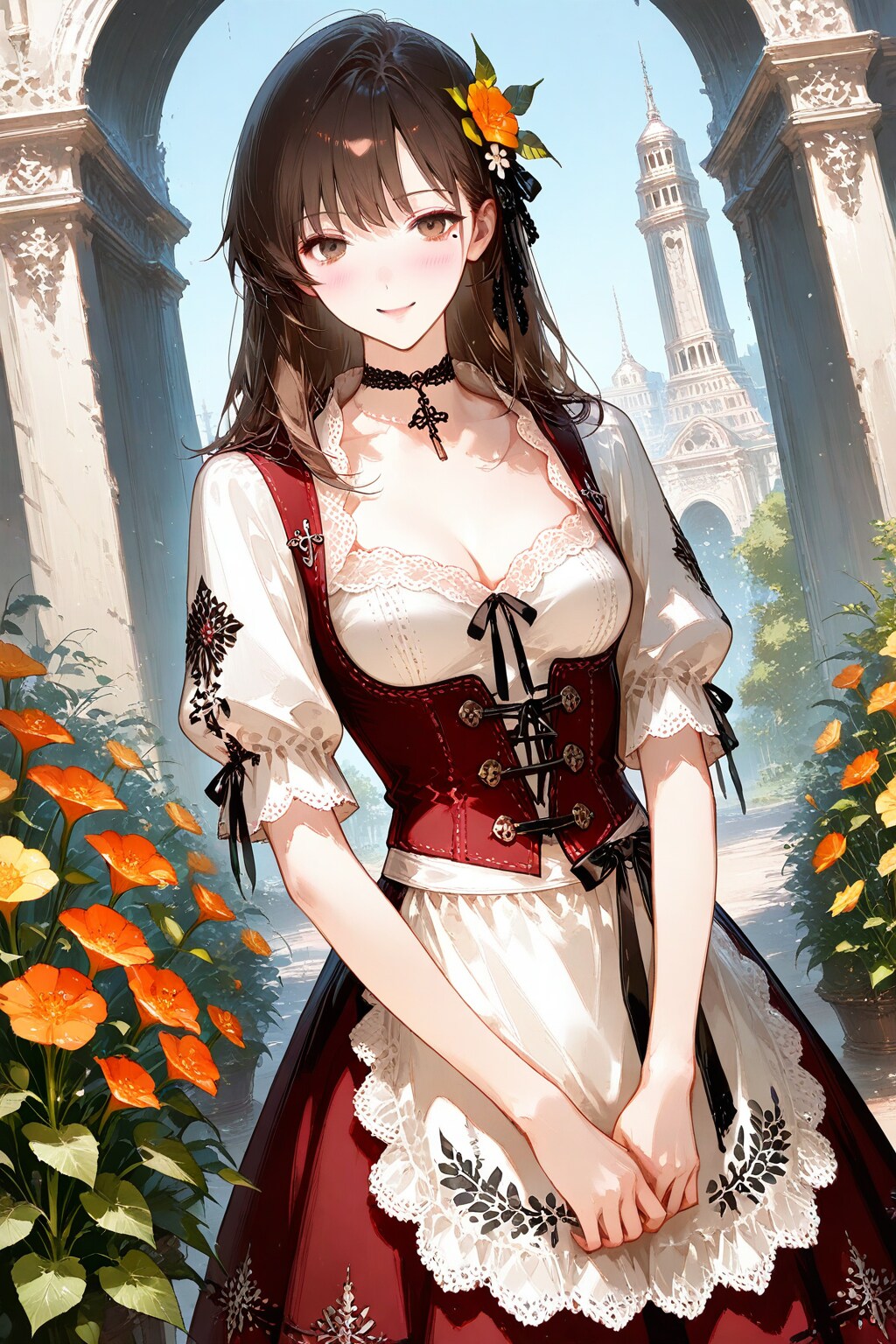 ディルンドル(Dirndl)は、オーストリアやバイエルン地域で伝統的に着用される女性の民族衣装です。ボディス、ブラウス、スカート、エプロンから成り、胸元を強調するコルセット風デザインやレース、刺繍が特徴です。エプロンのリボンの結び方(左で独身、右で既婚など)に意味があり、祭りや観光イベントで人気。現代では伝統を保ちつつモダンなアレンジも加えられています。