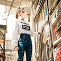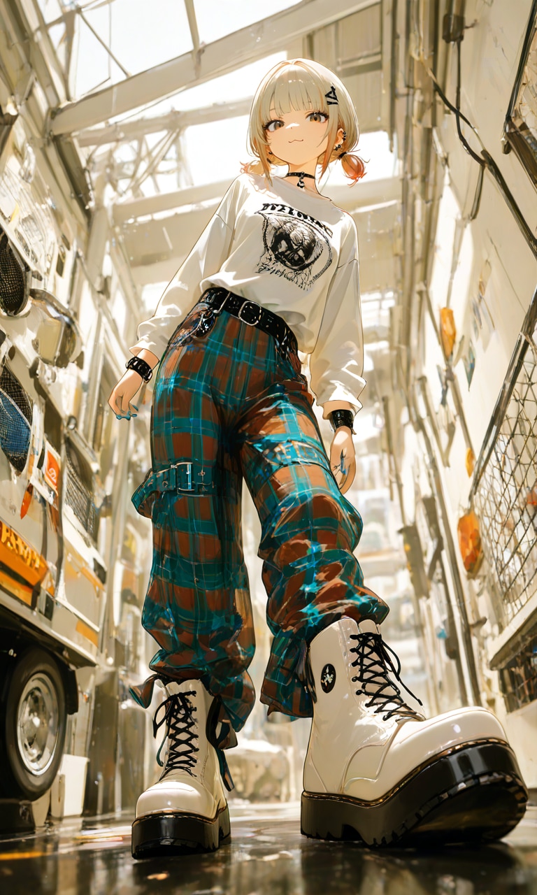 服装は双葉と対照的に青のボンデージパンツにしようと決めました✨マーチンも反対の白👢