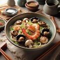 きのこいっぱいのseafood noodle