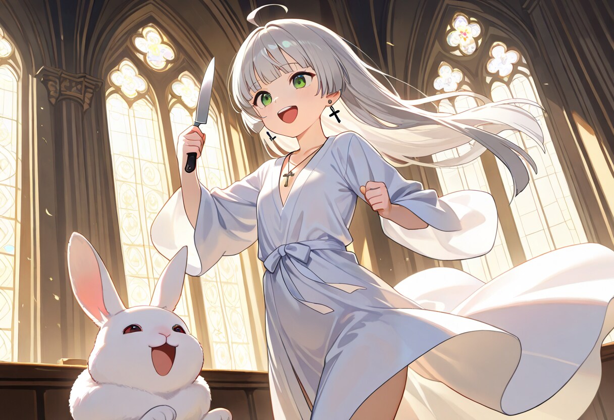 白兎:「ちこく、ちこくー もぐもぐ」/ 不思議な教会の聖母