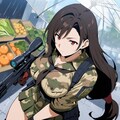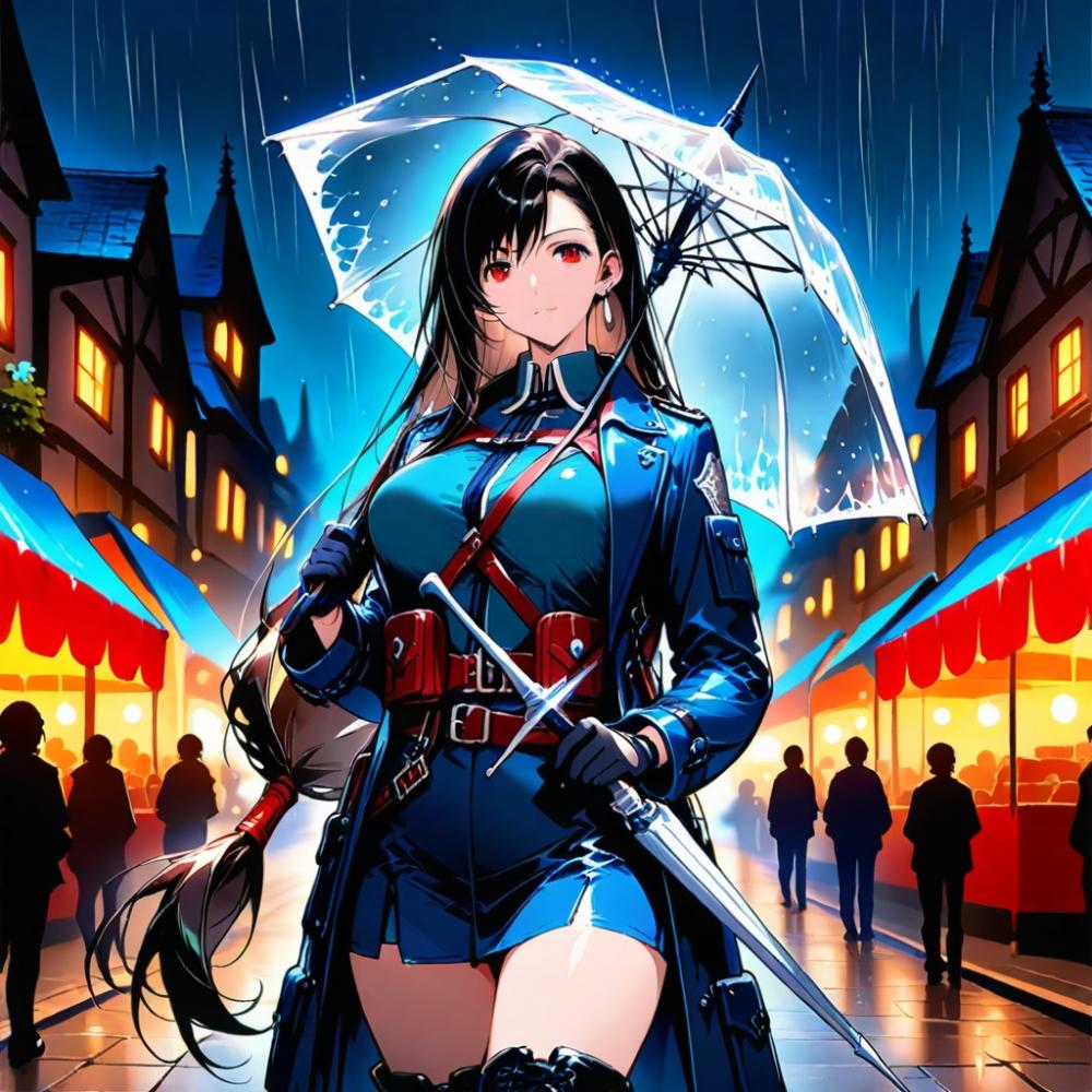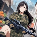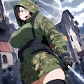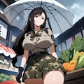 水彩アニメ風古代ギリシャ市場のタクティカル迷彩レインコートコスプレ人妻