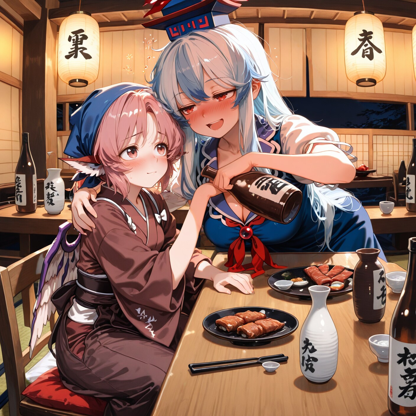 お「い……いえいえいえいえ、一献いただきますから!わーいけーね先生と晩酌嬉しいな~!」