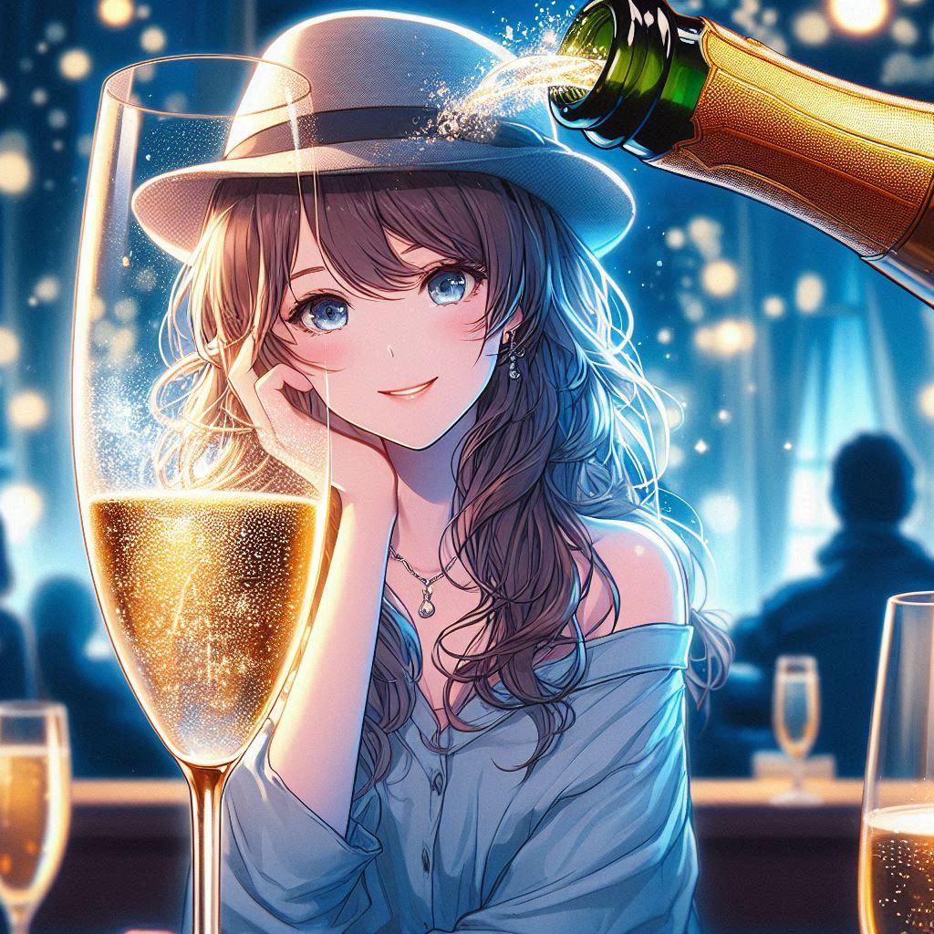 PVで随所にシャンパンの描写があるので、色々シャンパンと女性をテーマに作っていたところ、ふとこれが生成されまして。