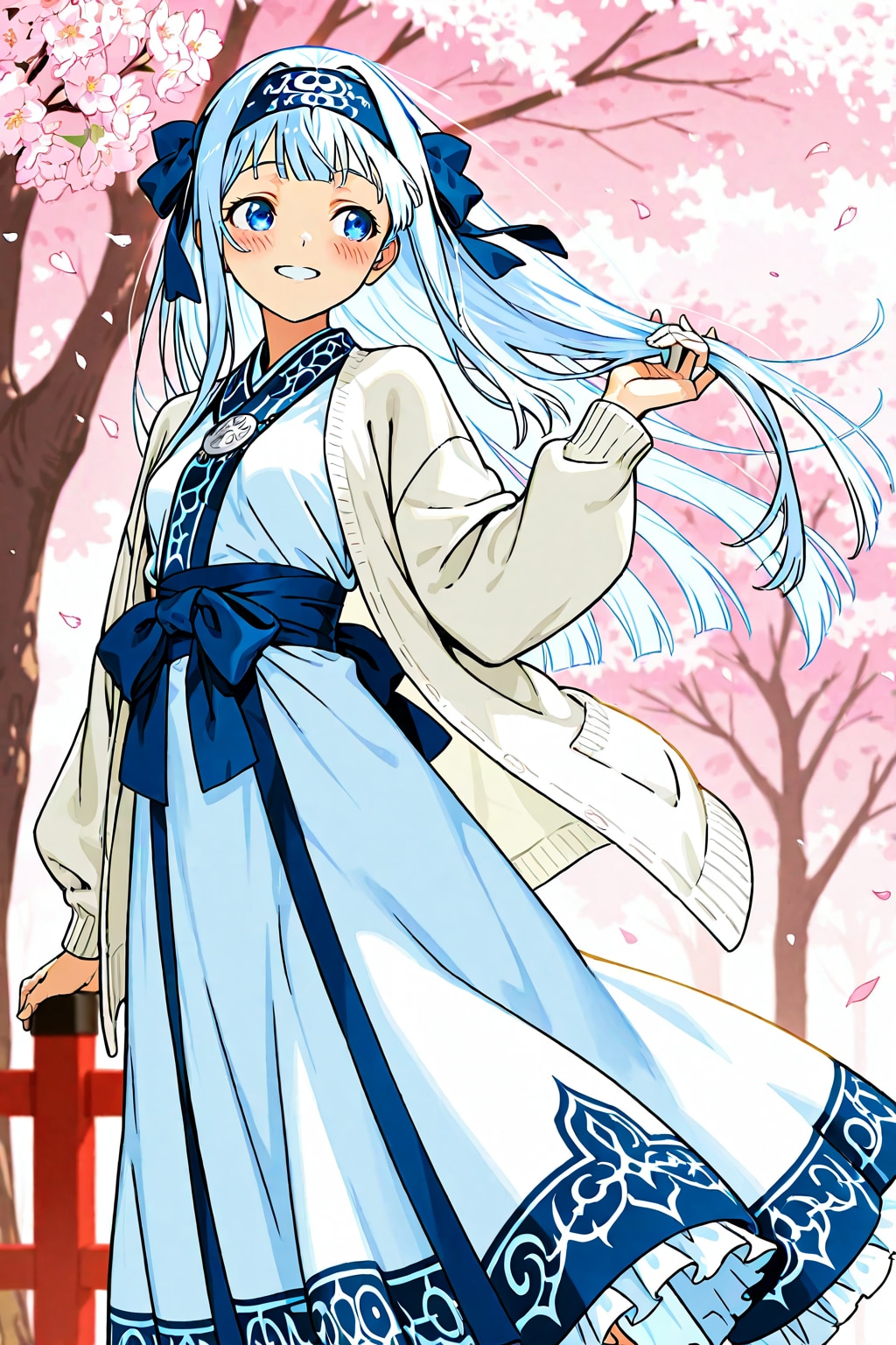 あと、桜の色に合わせてピンクのカーディガンを羽織ってもらいました。