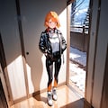 jacket partially removed, heart in eye, burnt clothes, holding fishing rod, kanji, doujin cover, pentagram, tape gag, adjusting headwear, red socks, friends, cloud print, coke-bottle glasses, oral invitation, competition school swimsuit, barbell piercing, gradient legwear, prisoner, blood on breasts, wind chime, carrying over shoulder, tape measure, flaming weapon