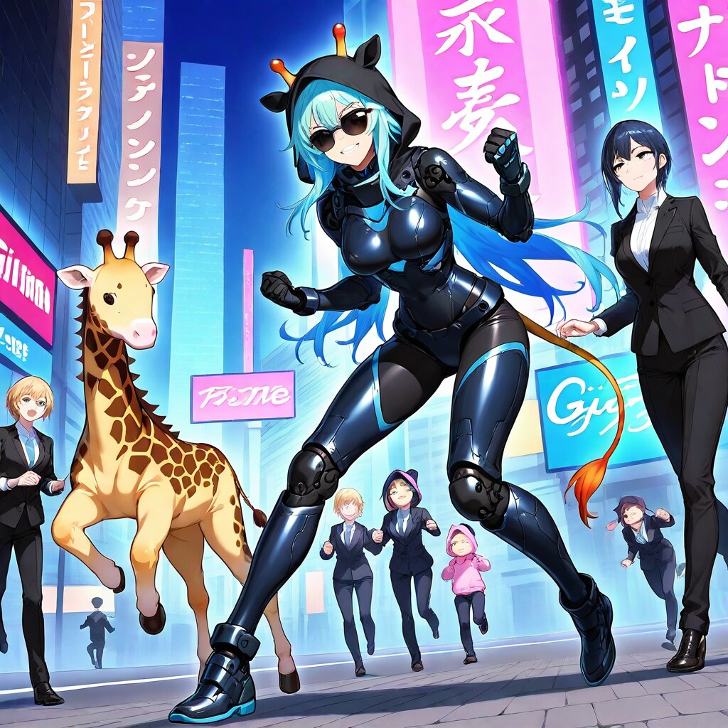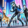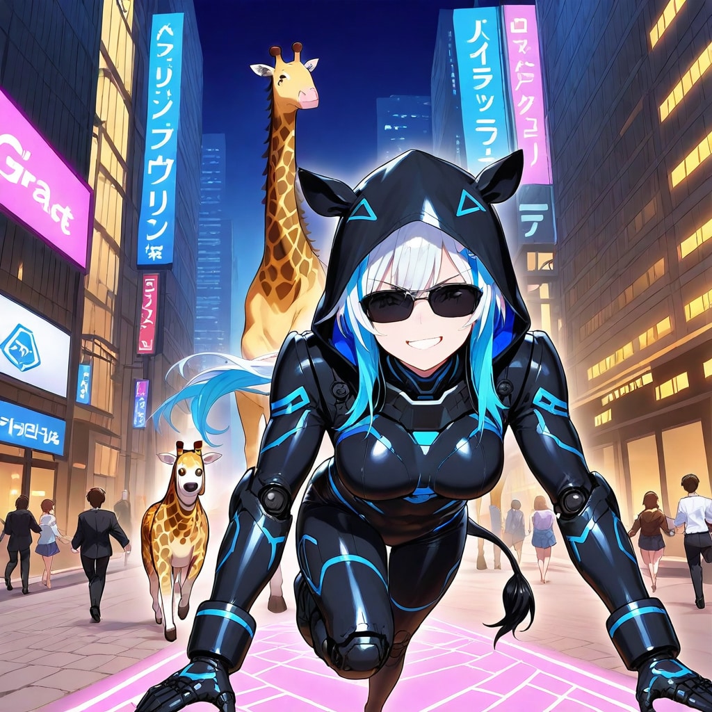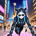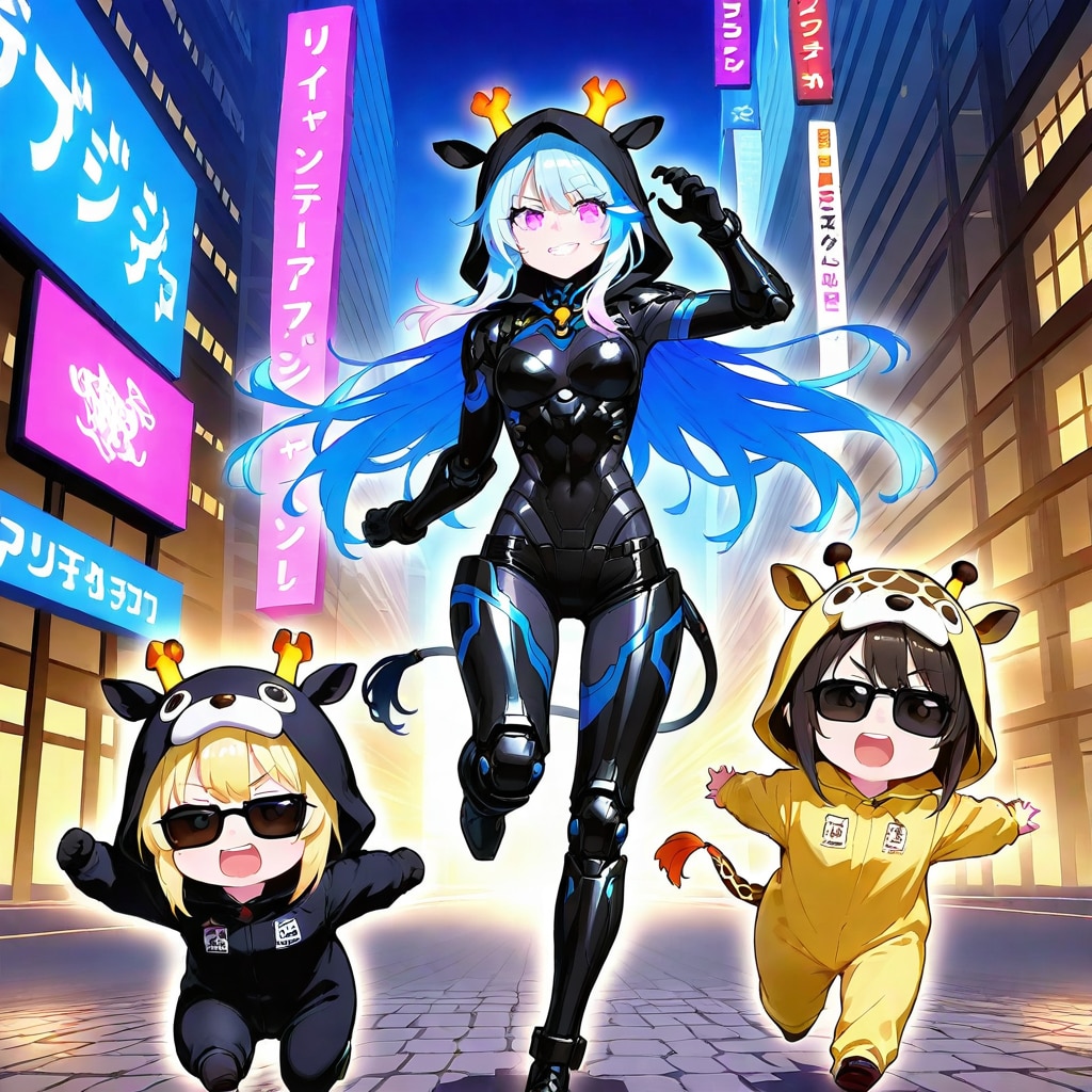 サイバーパンク風アニマルフーディーちゃんとちび子ちゃん