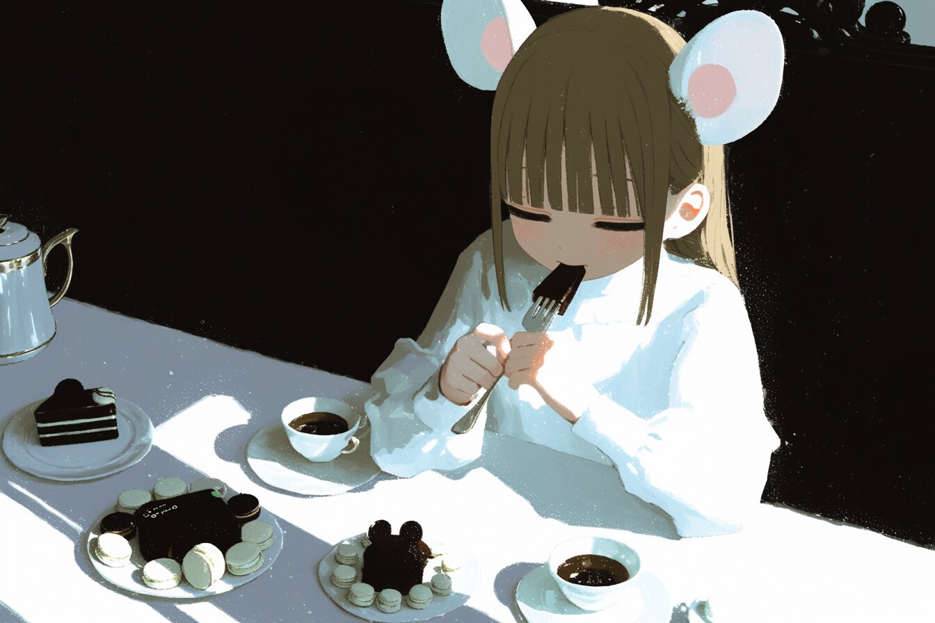 ⇨洋菓子の日のボツ。作る、売る、食べるでたくさん作ったテーマ。売るのは難しすぎてだめでした。こっちは食べる方。