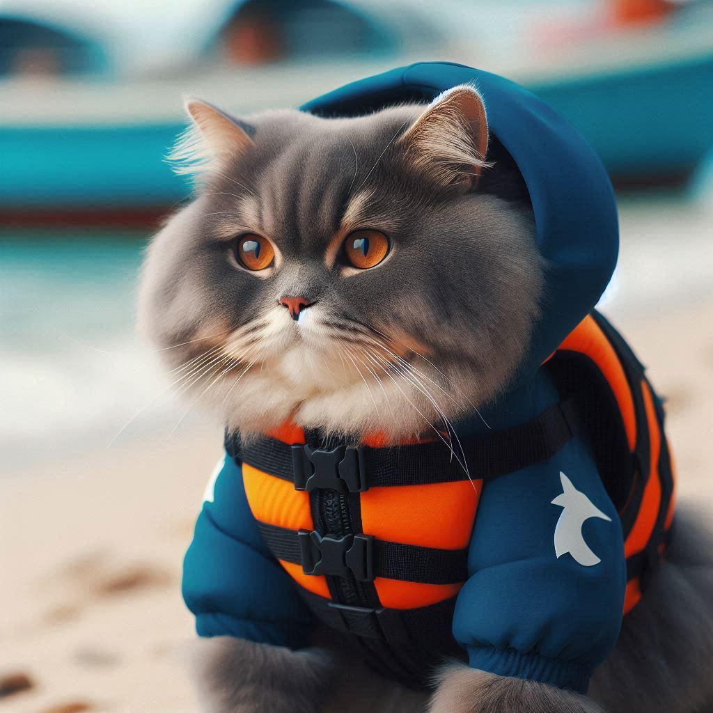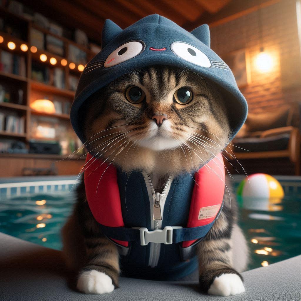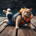 スク水と救命胴衣と猫