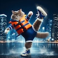 8/8追記:「スク水と救命胴衣と猫」が2024年8月7日のAIフォトデイリーランキング2位に入りました!