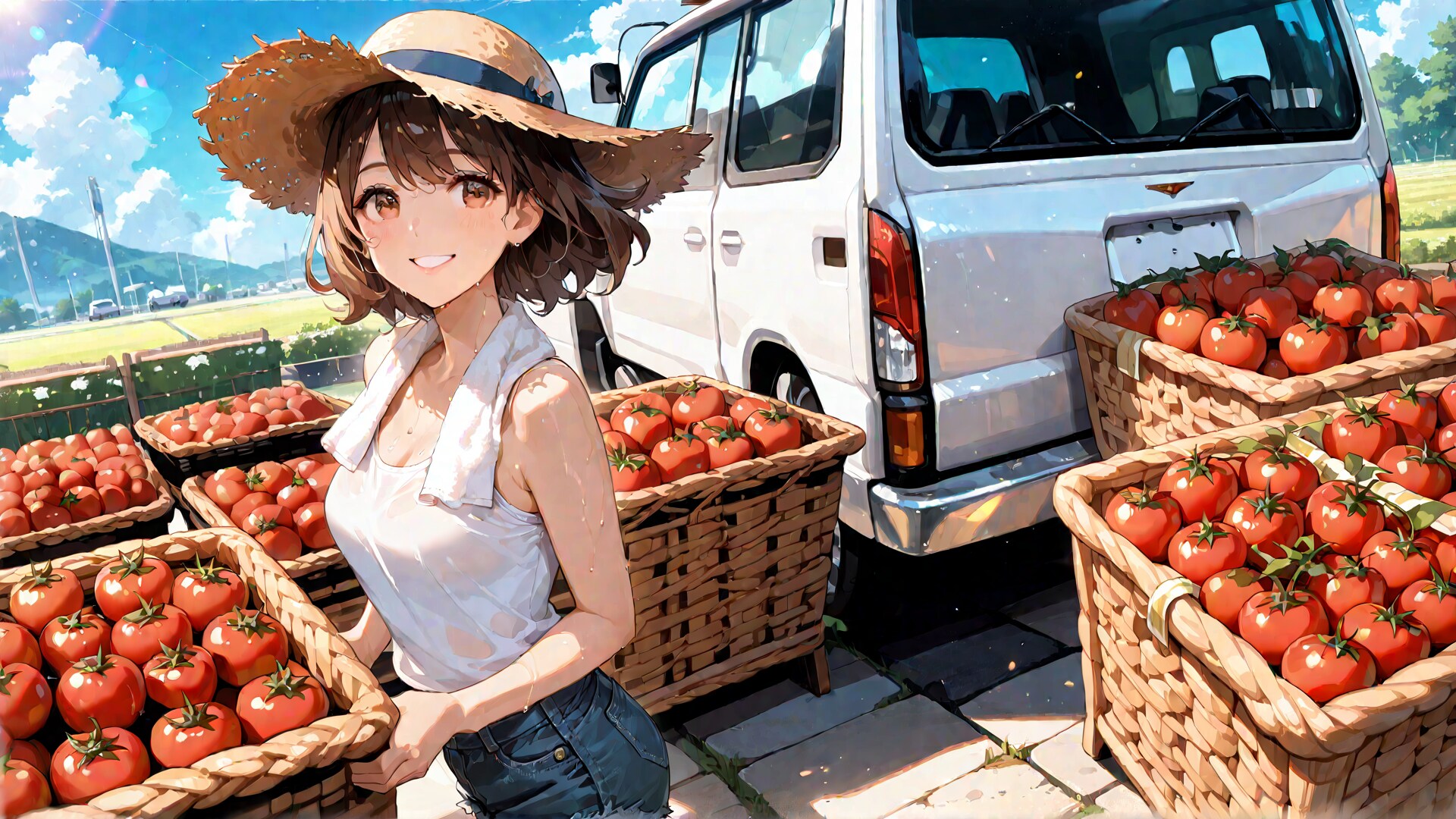 彼女の実家は豪農で、夏休みの宿題から逃れるために家業である農業の手伝いに勤しみ、ついでにバイト代を手に入れようと頑張るものの、得られる報酬は家業から得られる農作物のおやつと晩御飯のおかずを一品追加のみ。