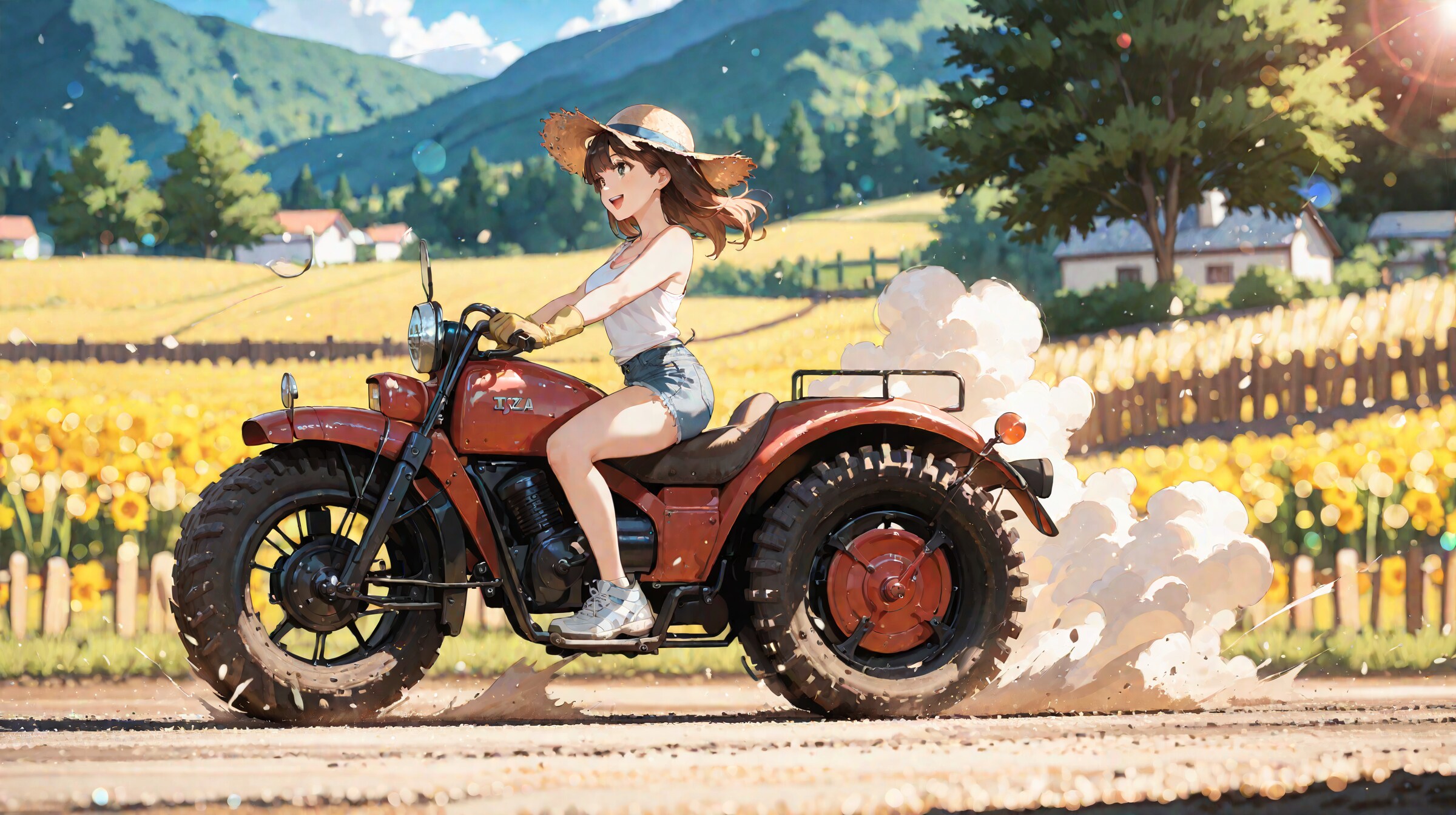 無免許ではあるものの、実家はあたり一帯の大地主で実家から畑周辺の広大な土地が私有地であるため、庭の納屋に放置されていた祖父のバイクに跨り夏休みの日々を畑仕事に精を出している。
