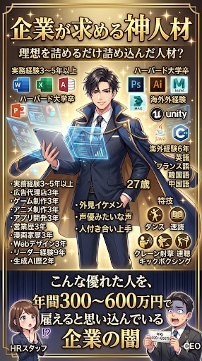 何でもソフト使えて、外国語できて、事務作業・営業できて・人間力全て揃っていて、AI使える前提、35歳以下