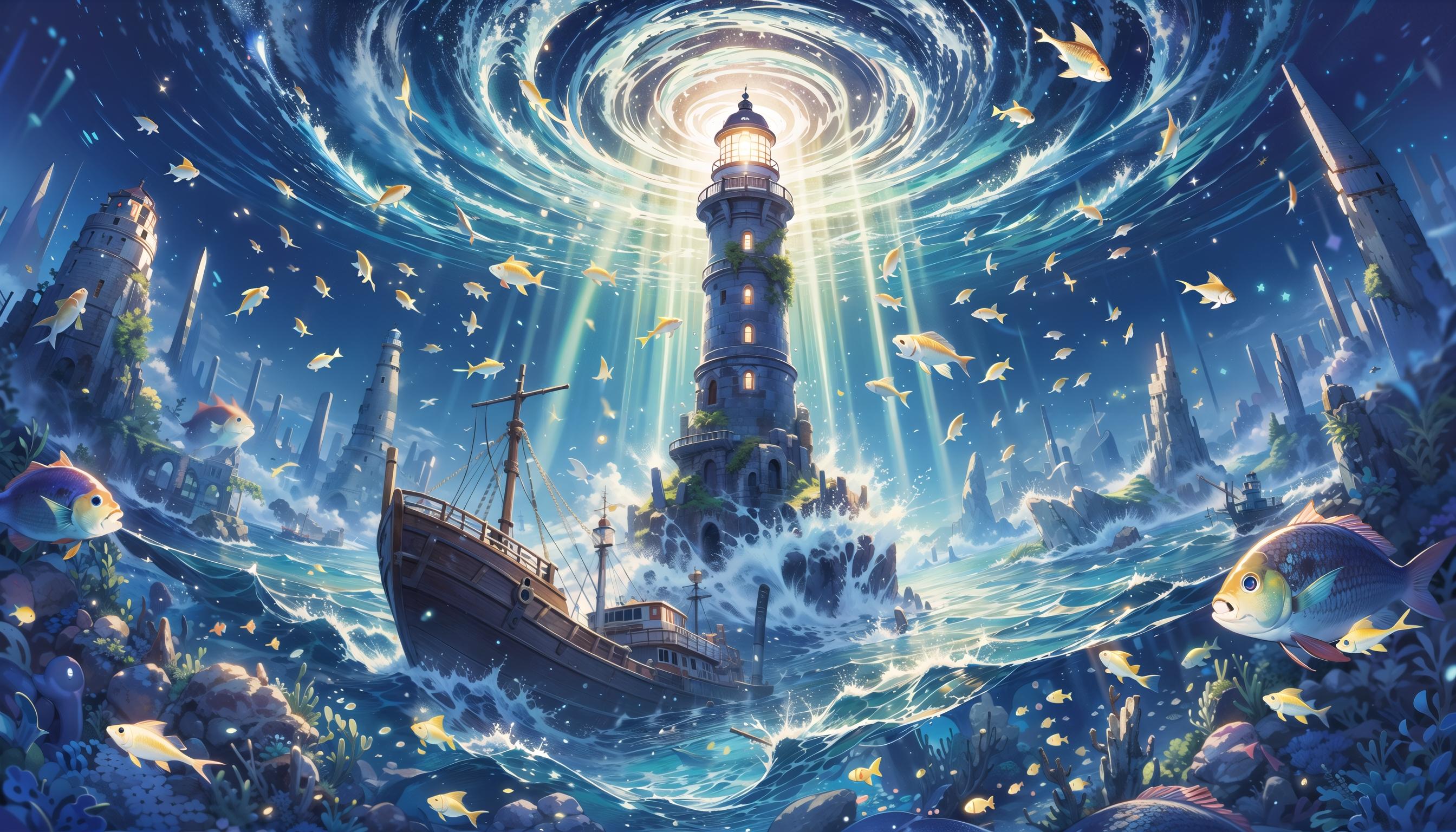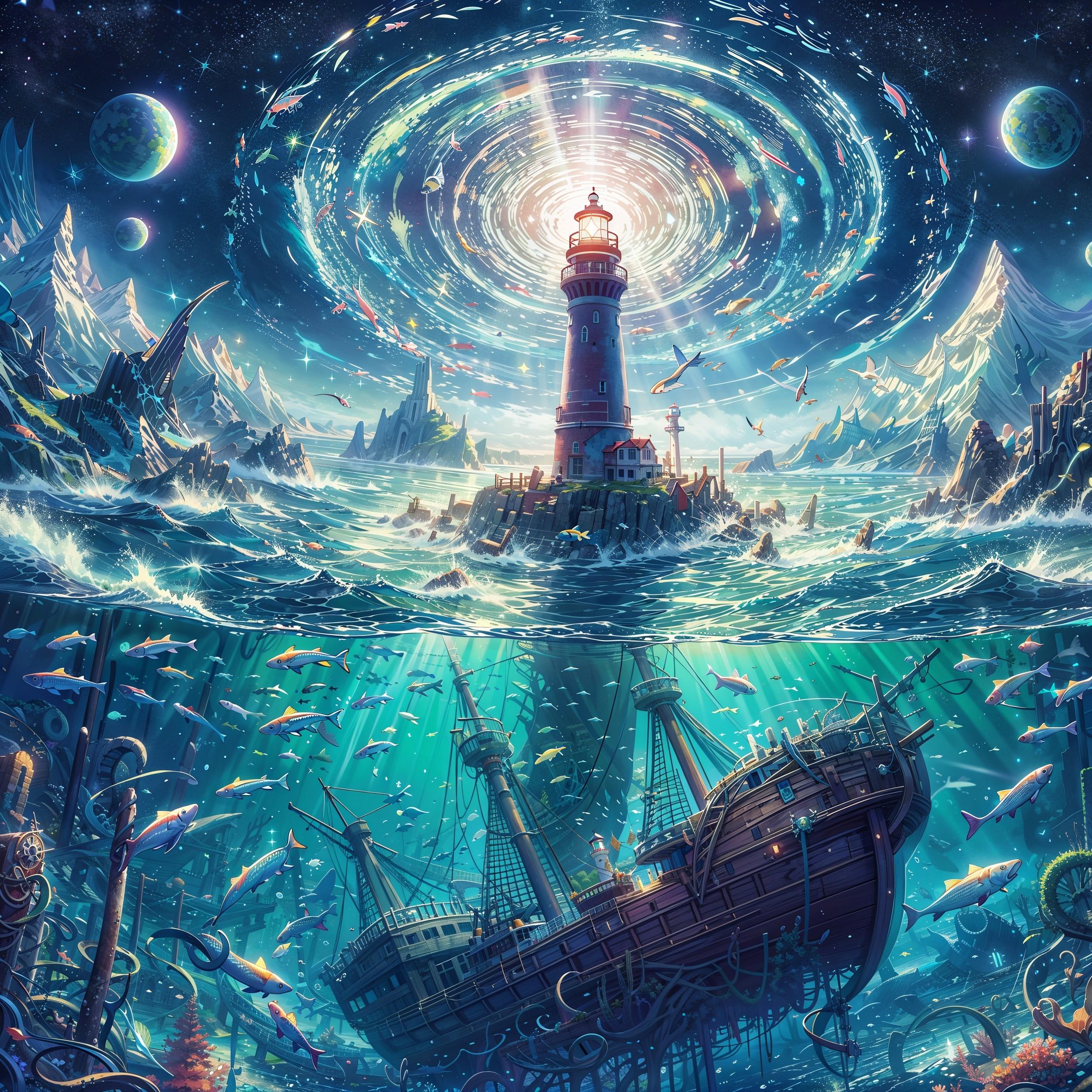 灯台と水中世界