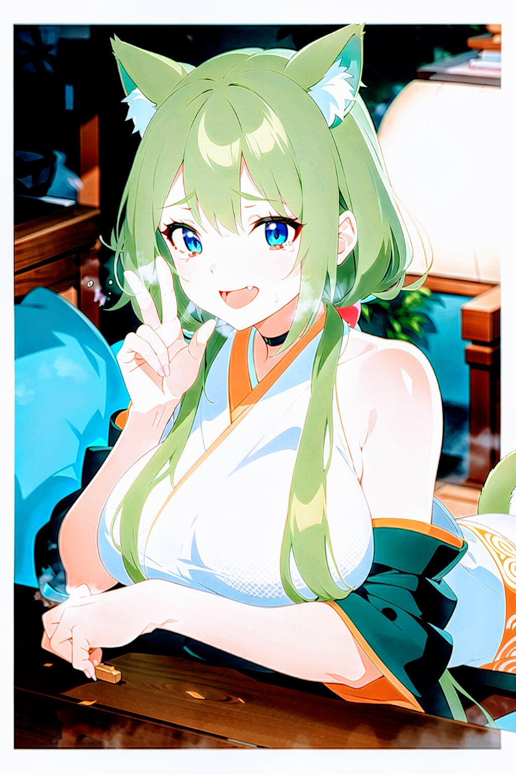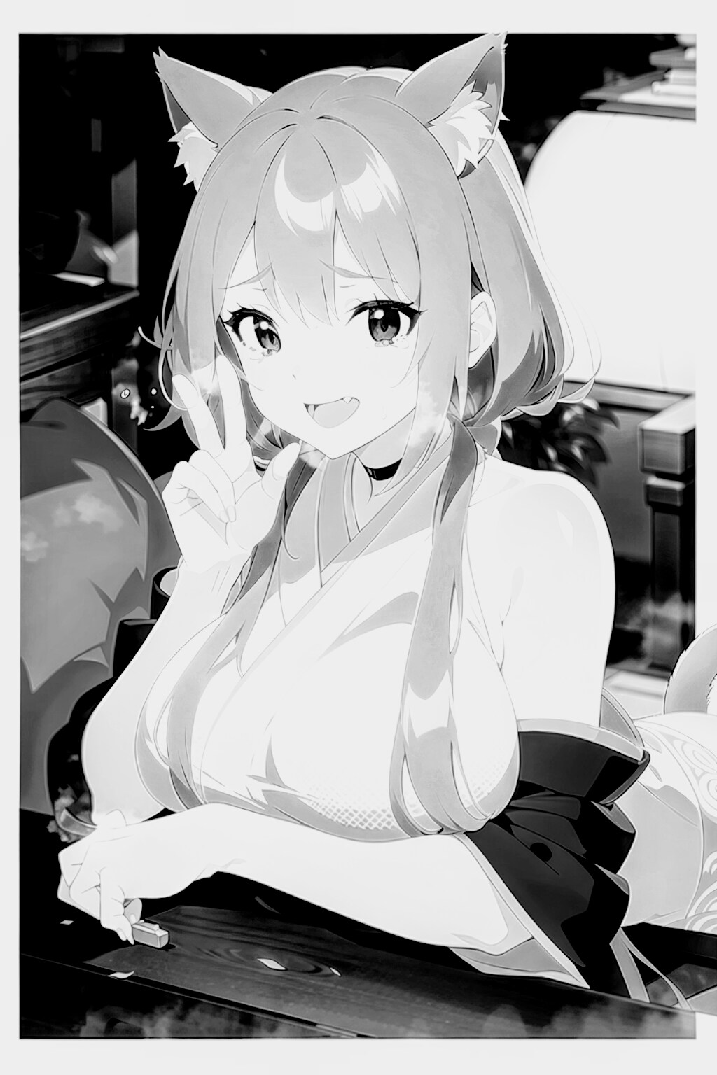 OPALさんで大正時代ブロマイド風画像になります.. 指の造形が怪しいですがどうぞ暖かい目で見てやってください_(..)_よろしくお願いいたします!!漫画ではないですが漫画風ということでどうぞご勘弁ください_(..)_!!民族衣装は大正時代日本のハイカラ喫茶店給仕(和風メイド)風ということでご勘弁ください_(..)_!!!