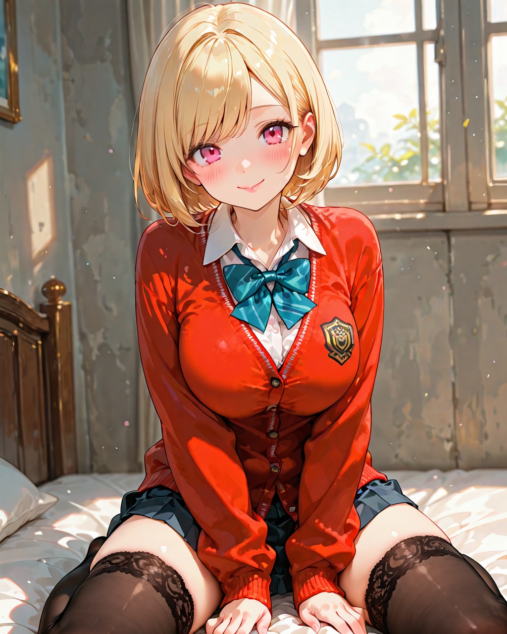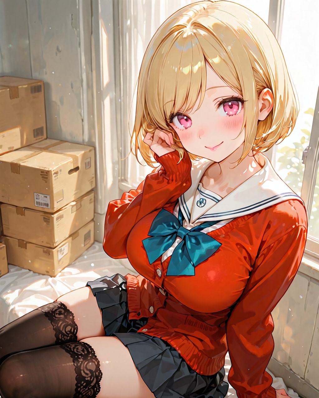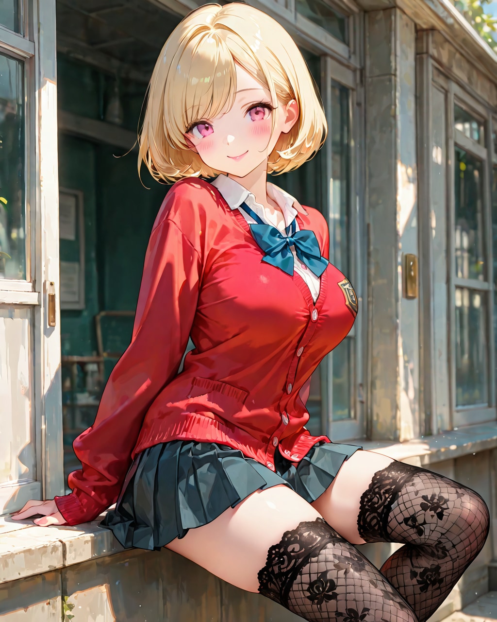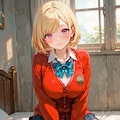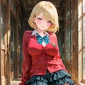 赤いカーディガンのJK
