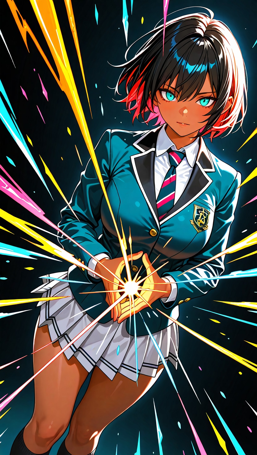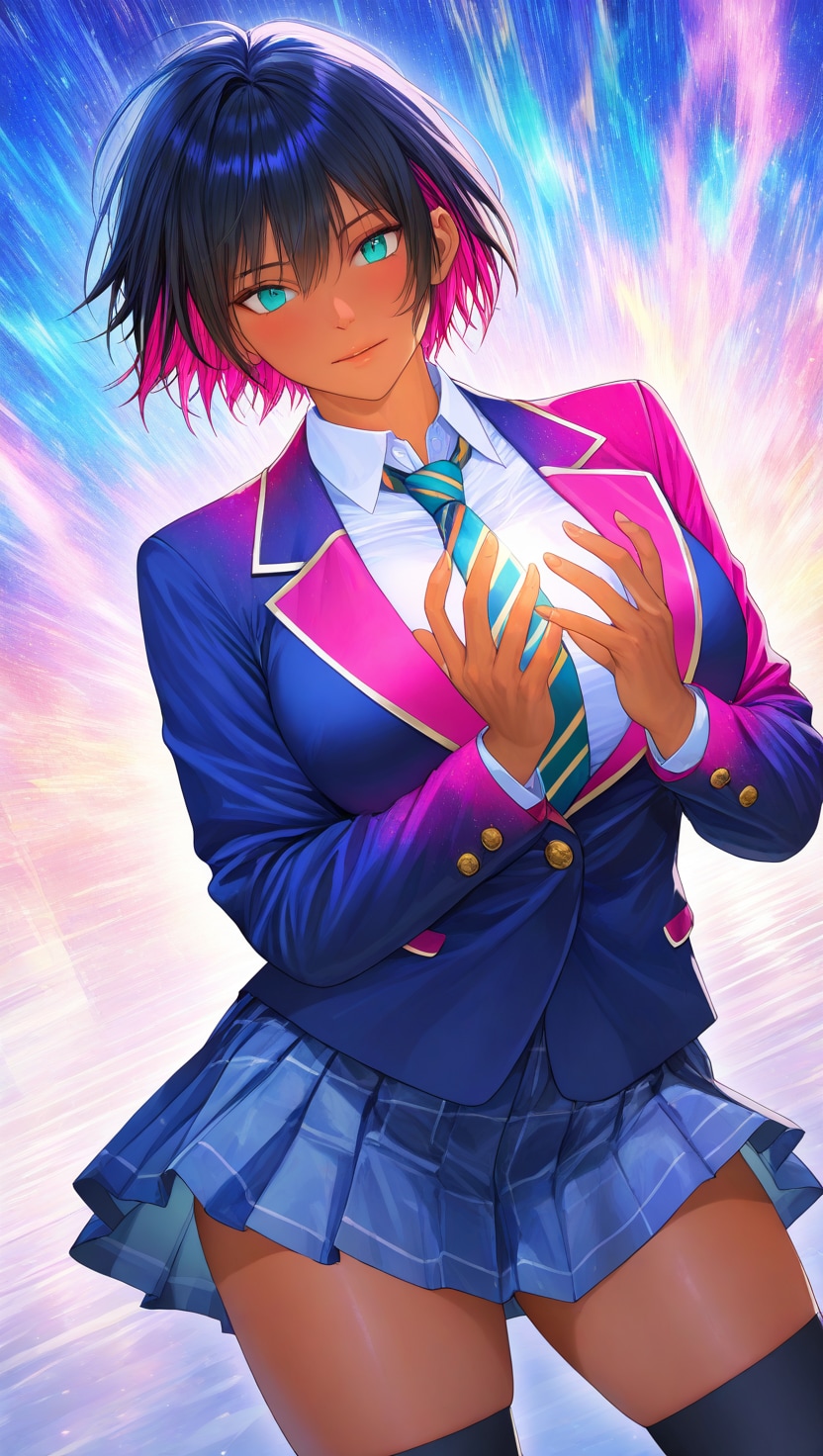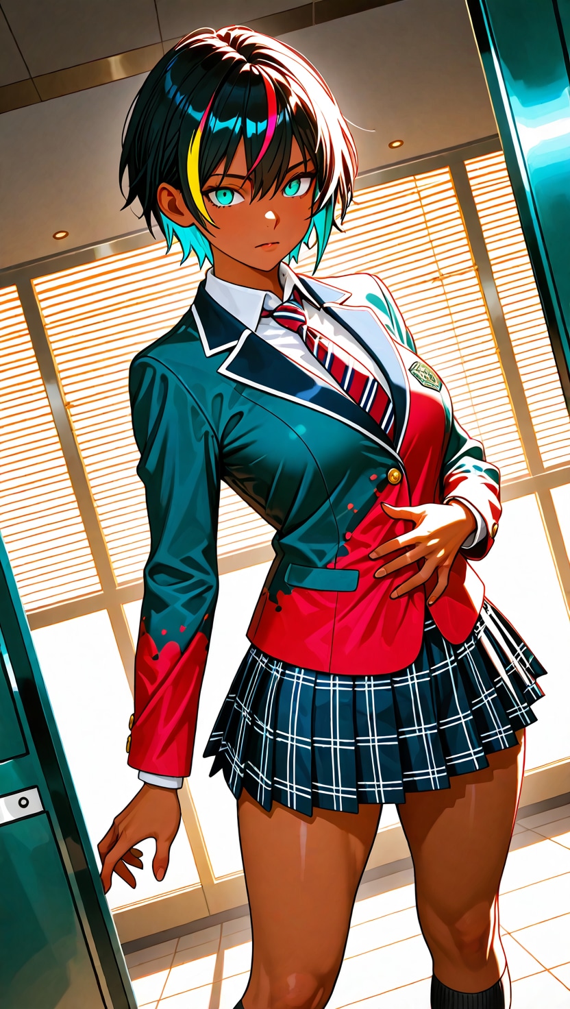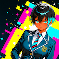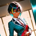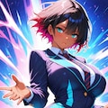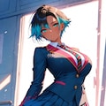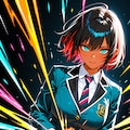 ショートヘアにブレザーJKさらにカラフル感を混ぜて生成しました。