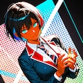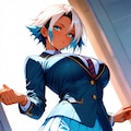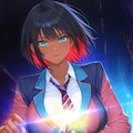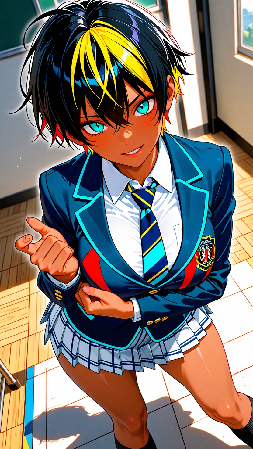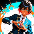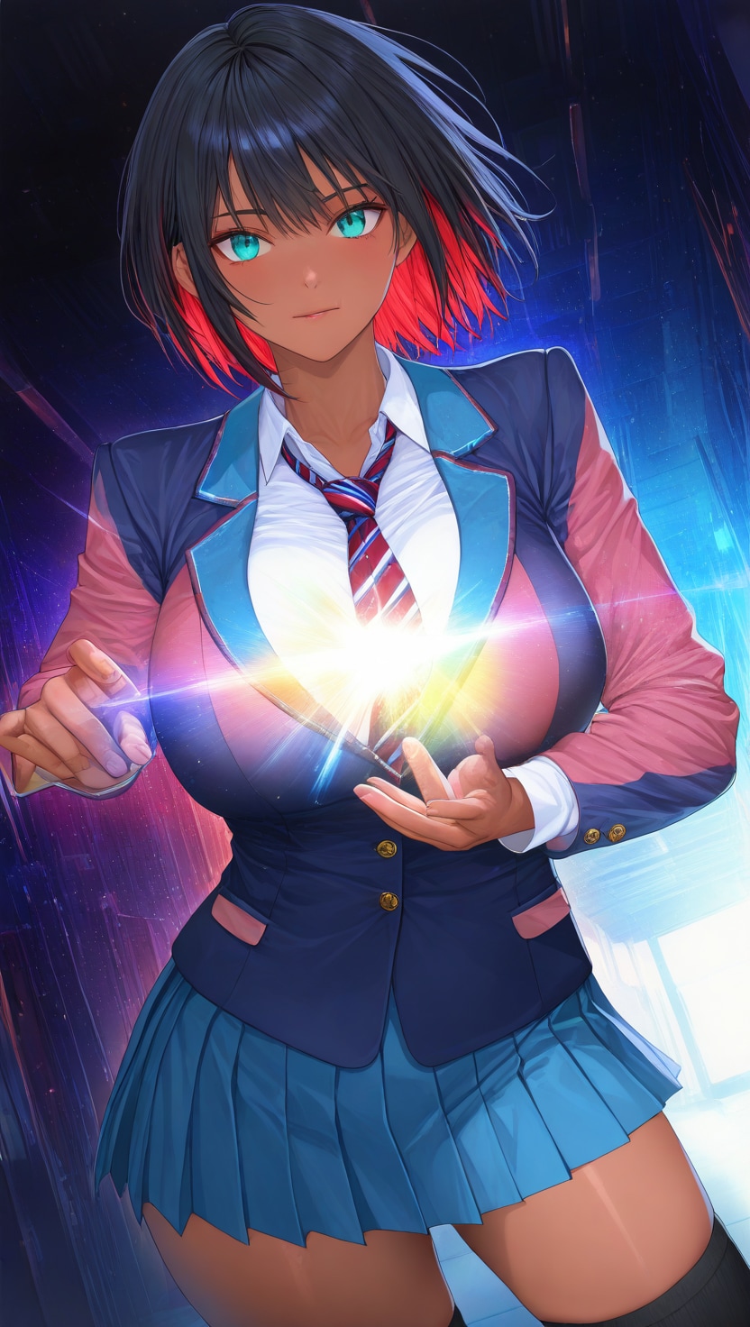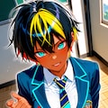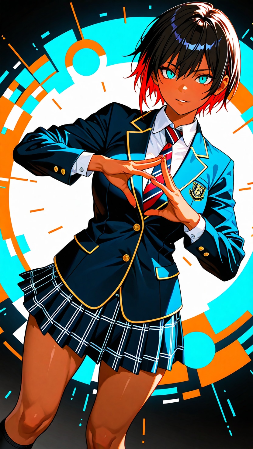 ショートヘアにブレザーJKさらにカラフル感を混ぜて生成しました。