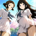 jacket partially removed, heart in eye, burnt clothes, holding fishing rod, kanji, doujin cover, pentagram, tape gag, adjusting headwear, red socks, friends, cloud print, coke-bottle glasses, oral invitation, competition school swimsuit, barbell piercing, gradient legwear, prisoner, blood on breasts, wind chime, carrying over shoulder, tape measure, flaming weapon