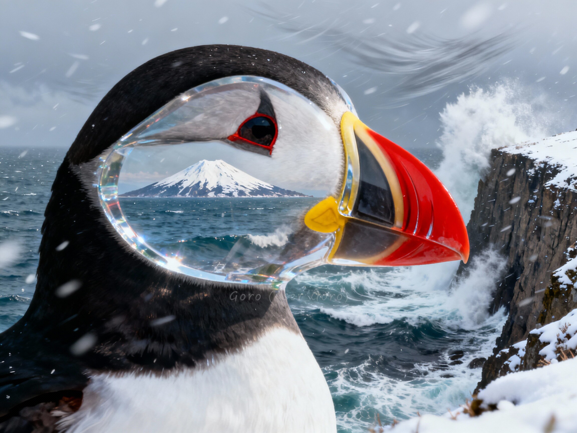 1枚目、エトピリカの鮮やかな嘴をステンドグラスのようにしてみました。