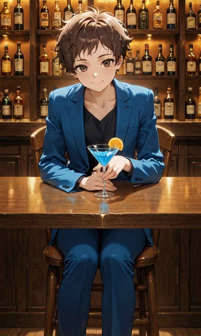 マスター「あ! 青いカクテルに緑のジュレが浮かんでる なるほどこれでサファイヤグリーンってことかぁ」