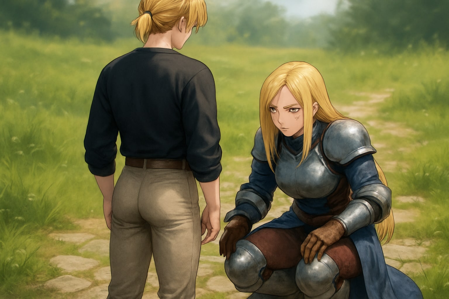 そんなラムザの尻を眺めて訝しむアグリアス、という構図を目指した