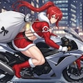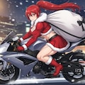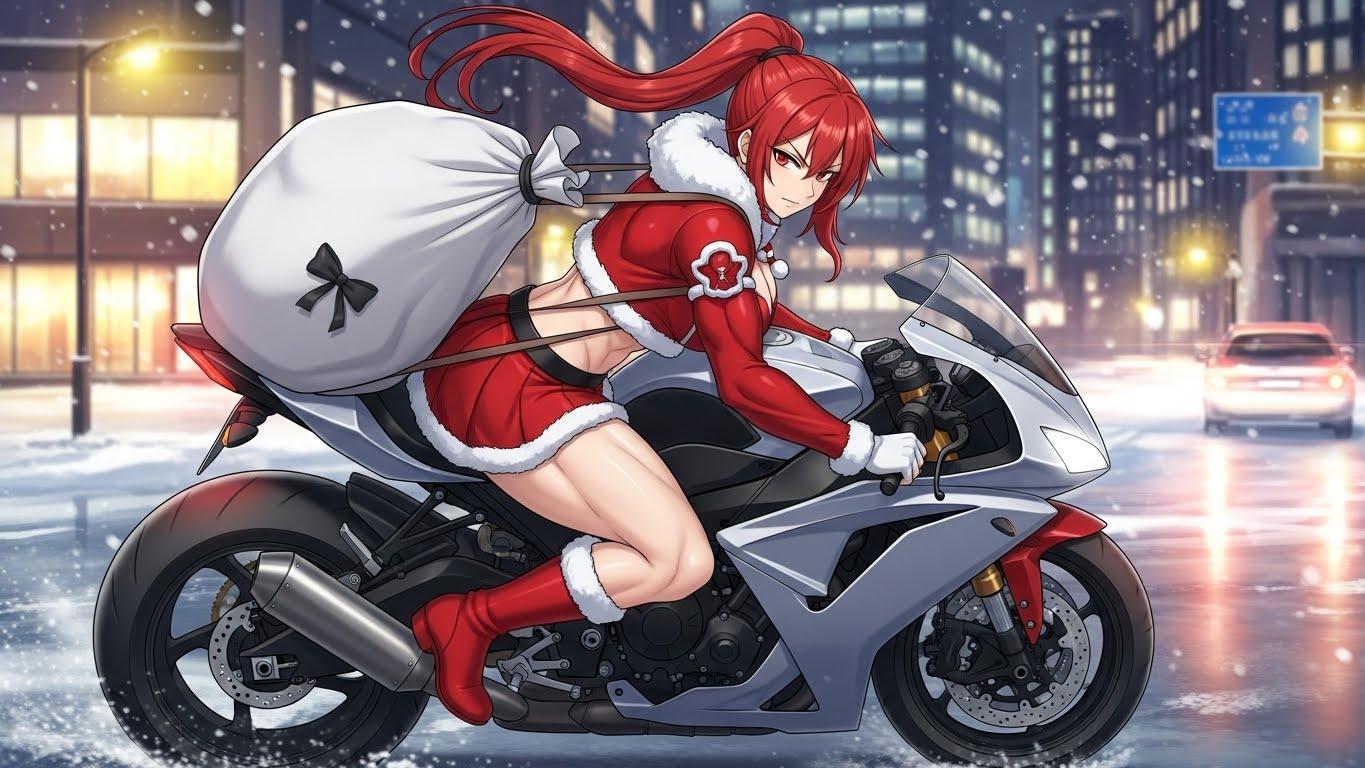 赤いポニーテールは走行中もよく映え、サンタコスチュームとの相性も抜群。