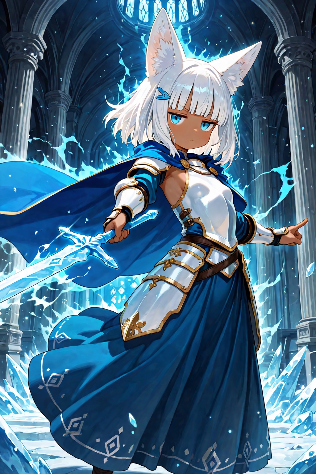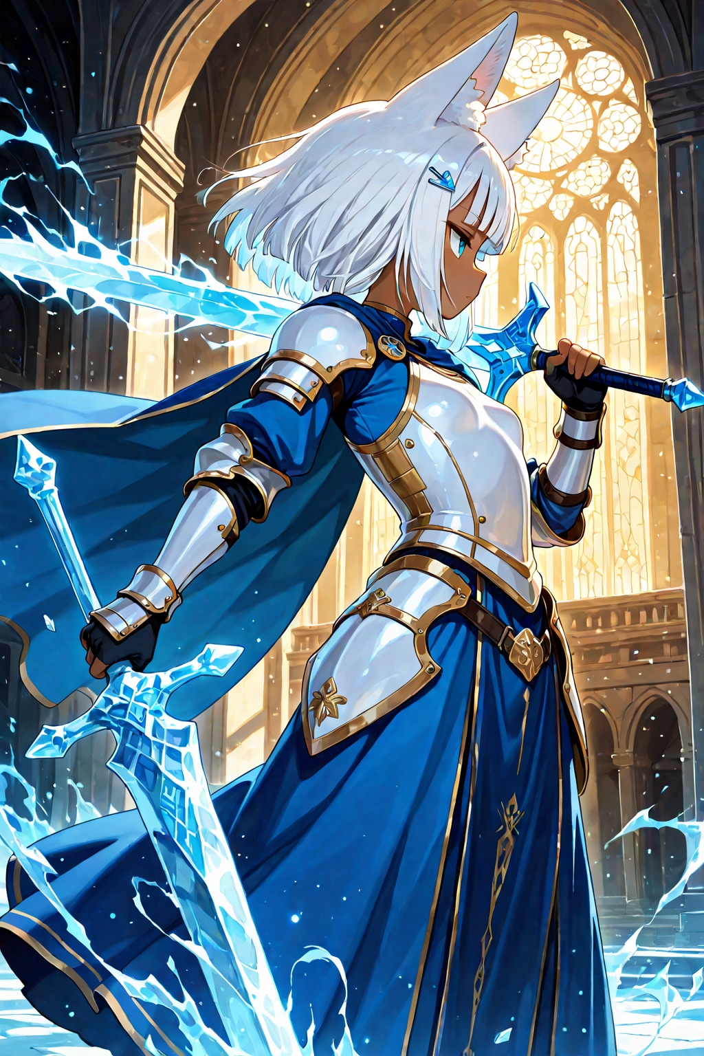 氷の閃光と月影の疾走が幾度もぶつかり合い、回廊は凍り付き、壁は抉れ、黒き火花が散っていた。