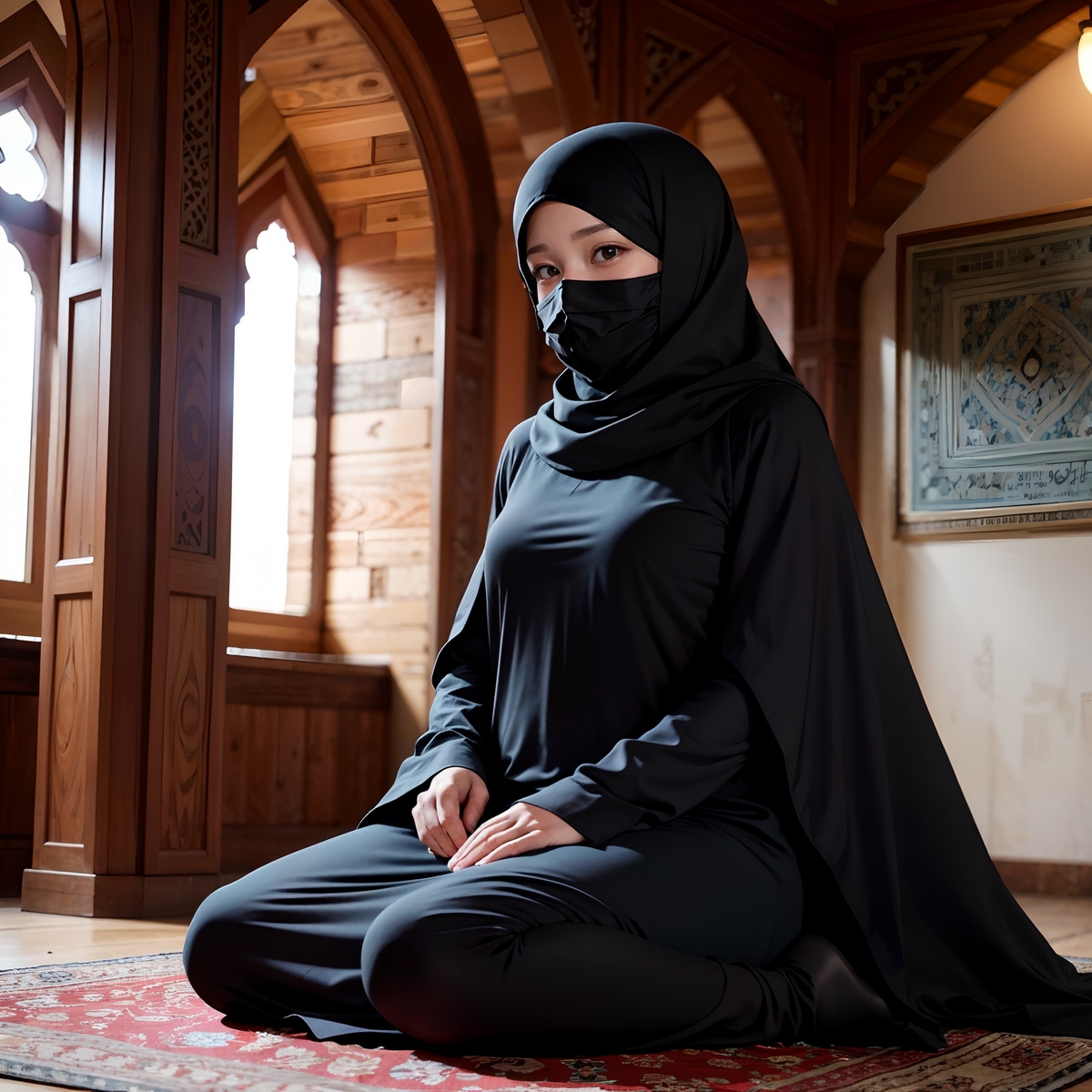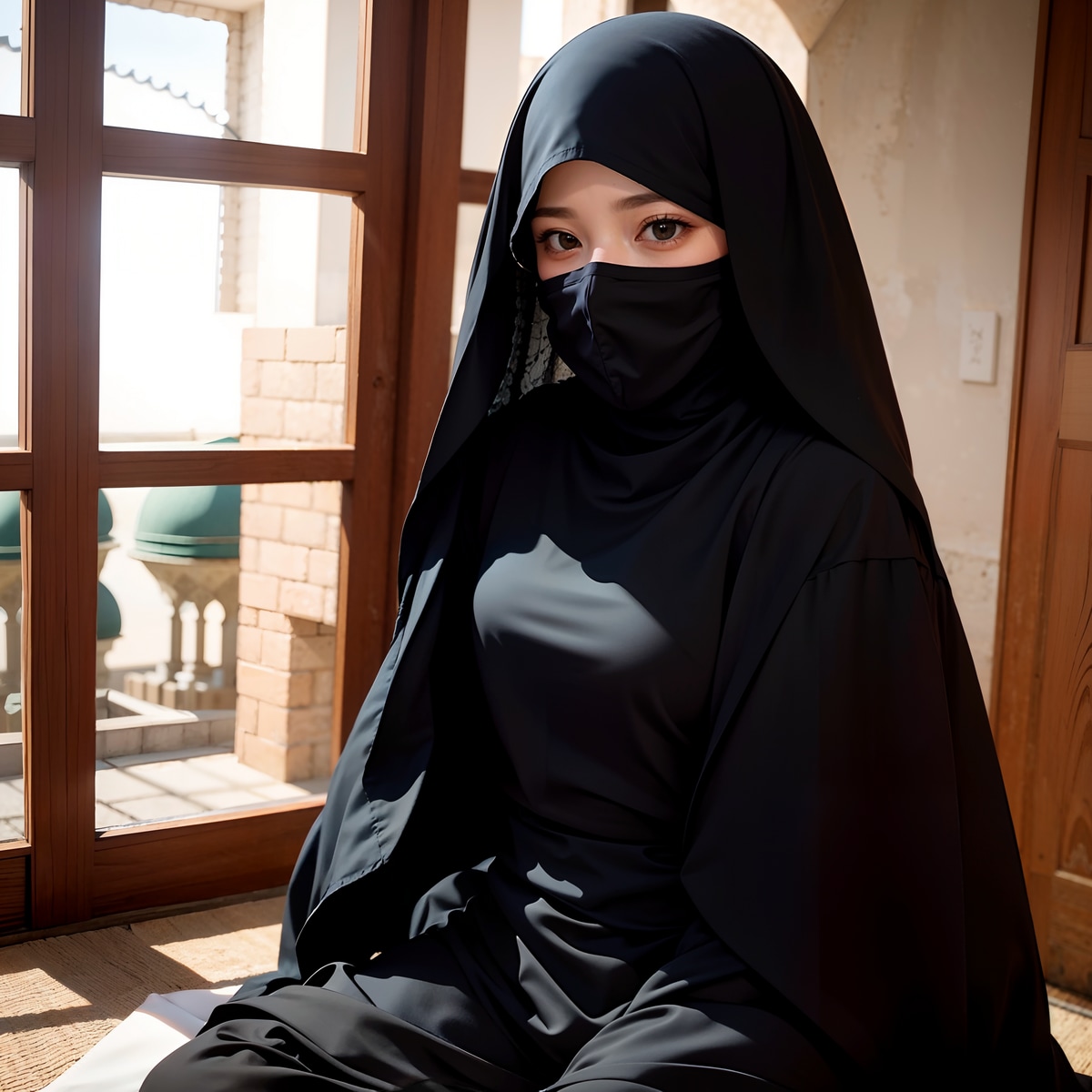 あと、最後の1枚はムスリムとしてこの格好はNGだと思うので、これはAIの気まぐれで出たヒジャーブっぽいものを被るイーヨになります🥰